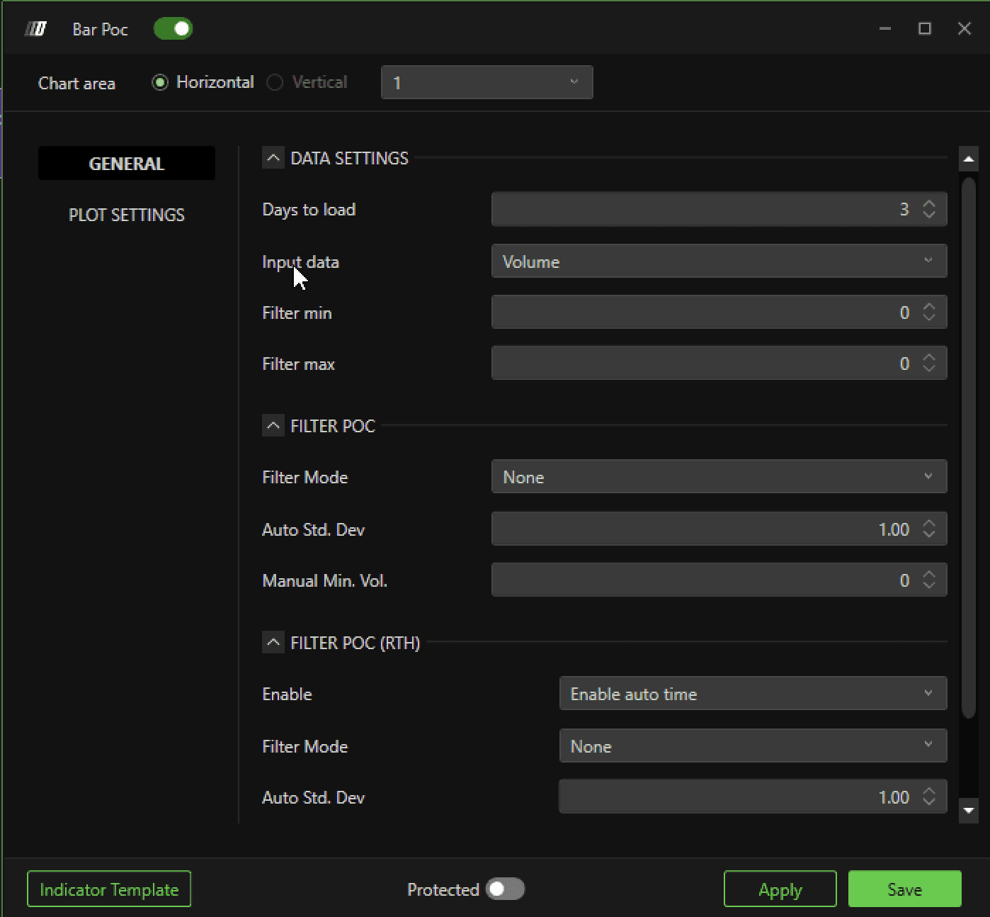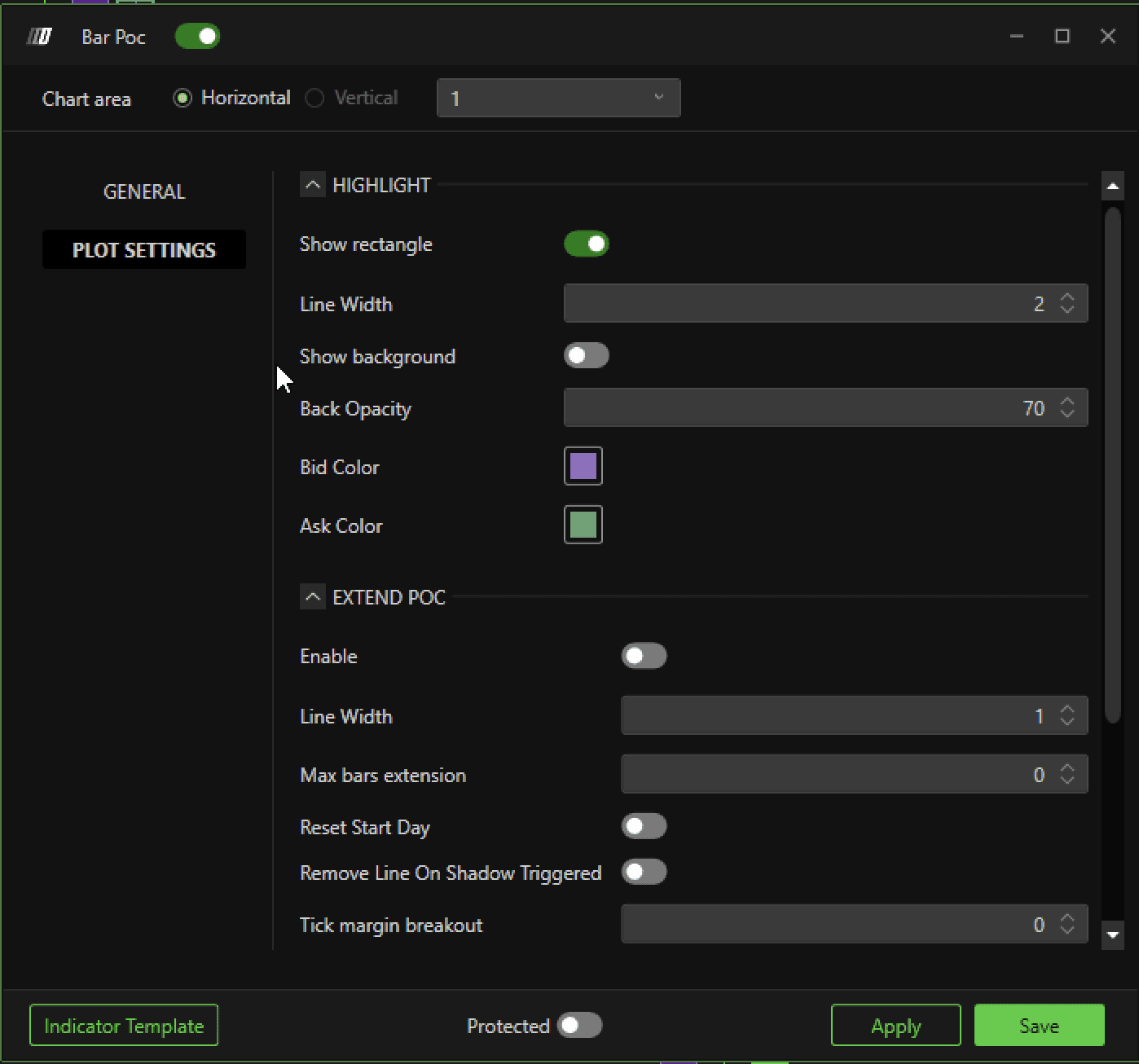 Enable: This button Enable/Disable a line form the POC area of the candle to the right end of the chart.