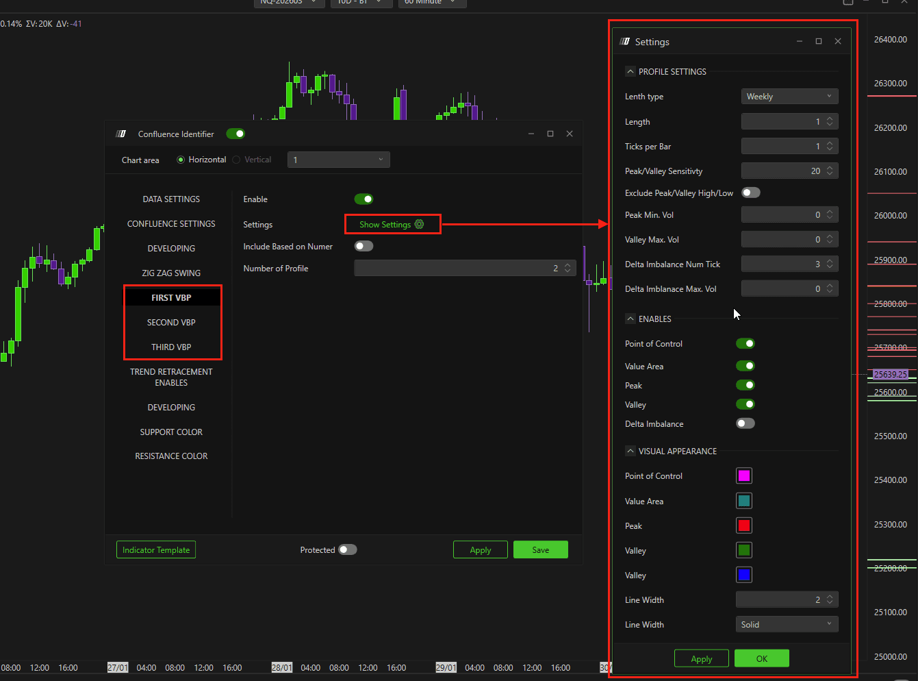 For a cleaner chart, you can disable VBP lines and display Volume Profiles using separate indicators.