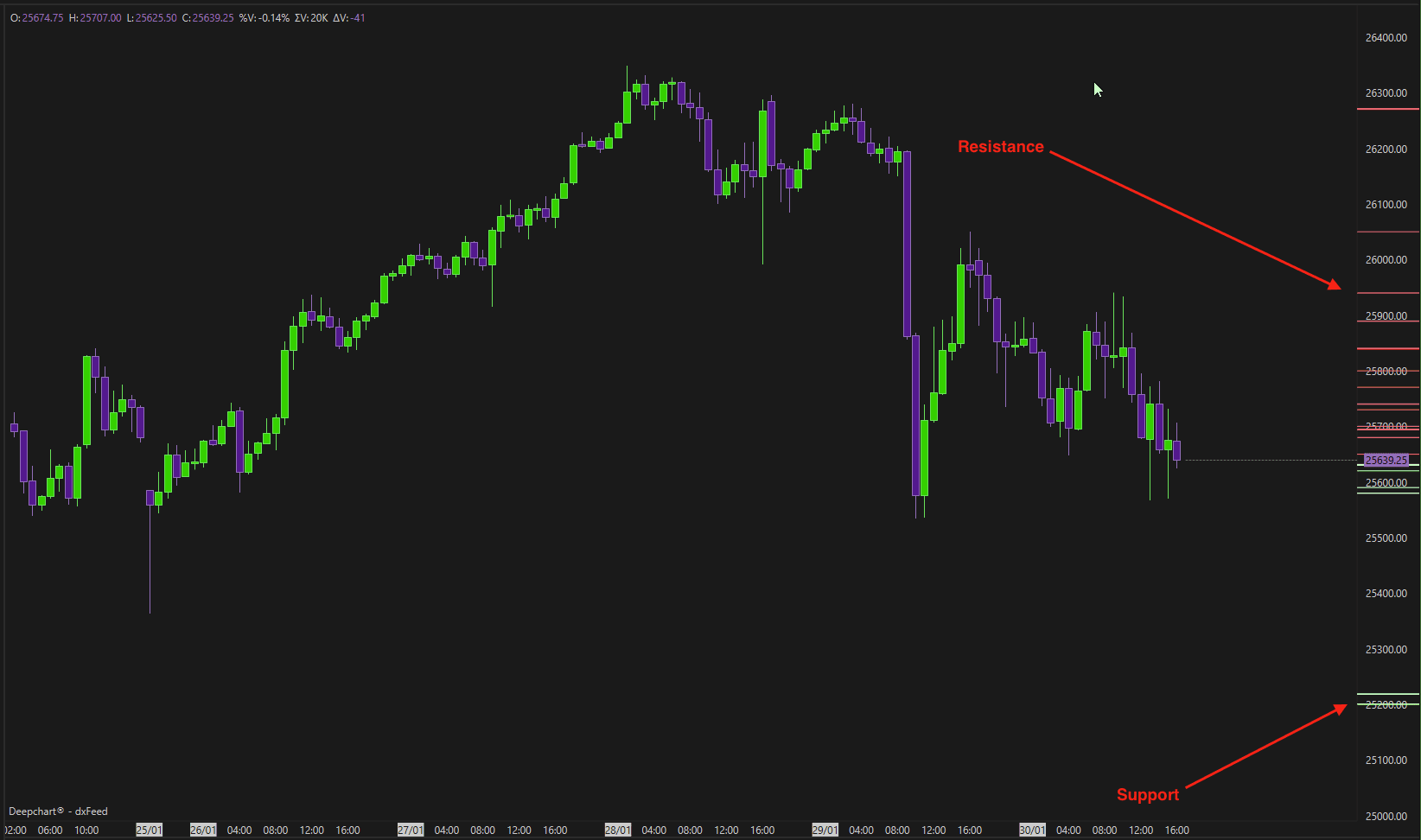 Volume Profile levels (POC, Value Area, Peaks, Valleys)