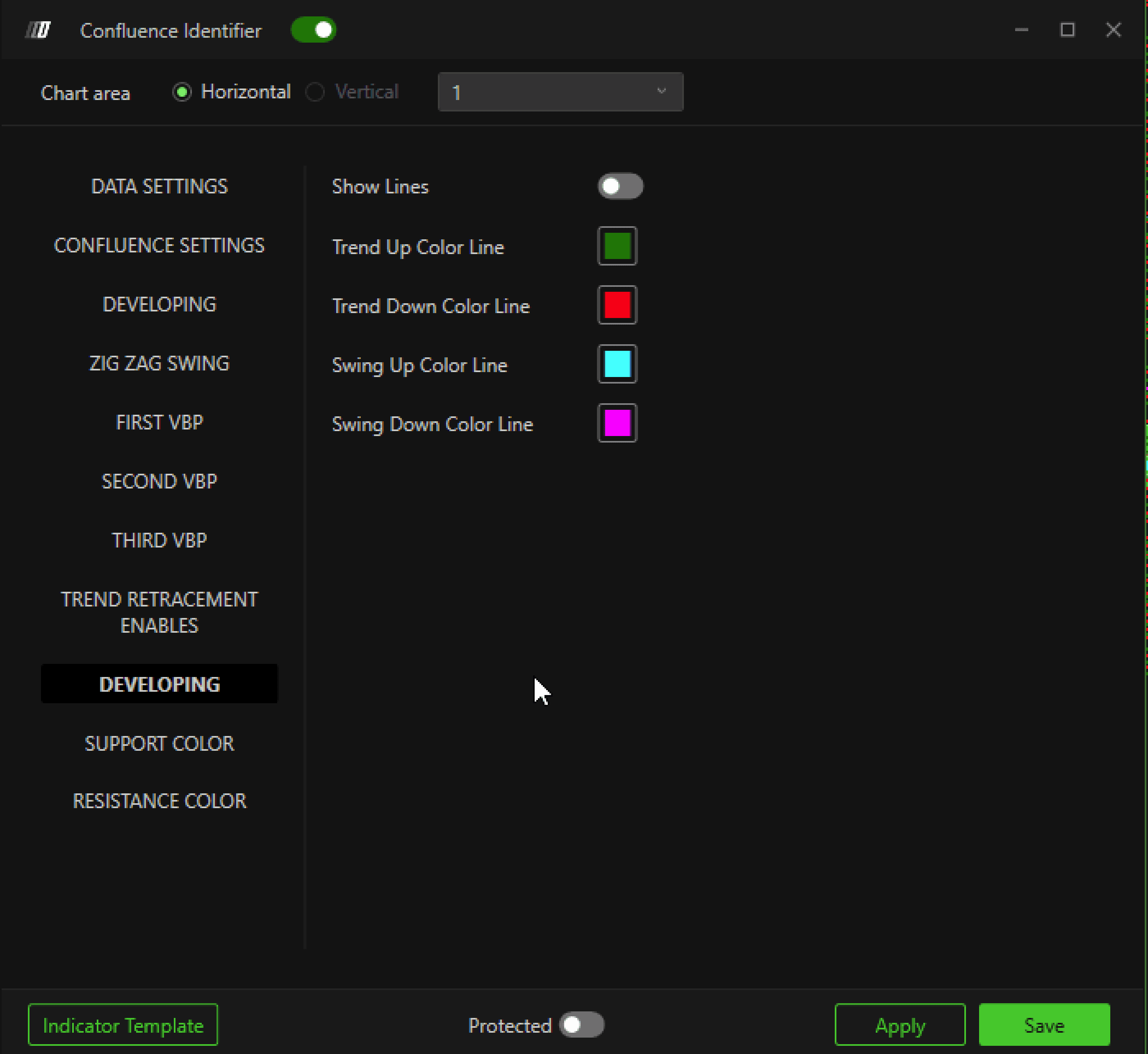 Customize the colors of support and resistance zones based on the number of confluences forming each zone.