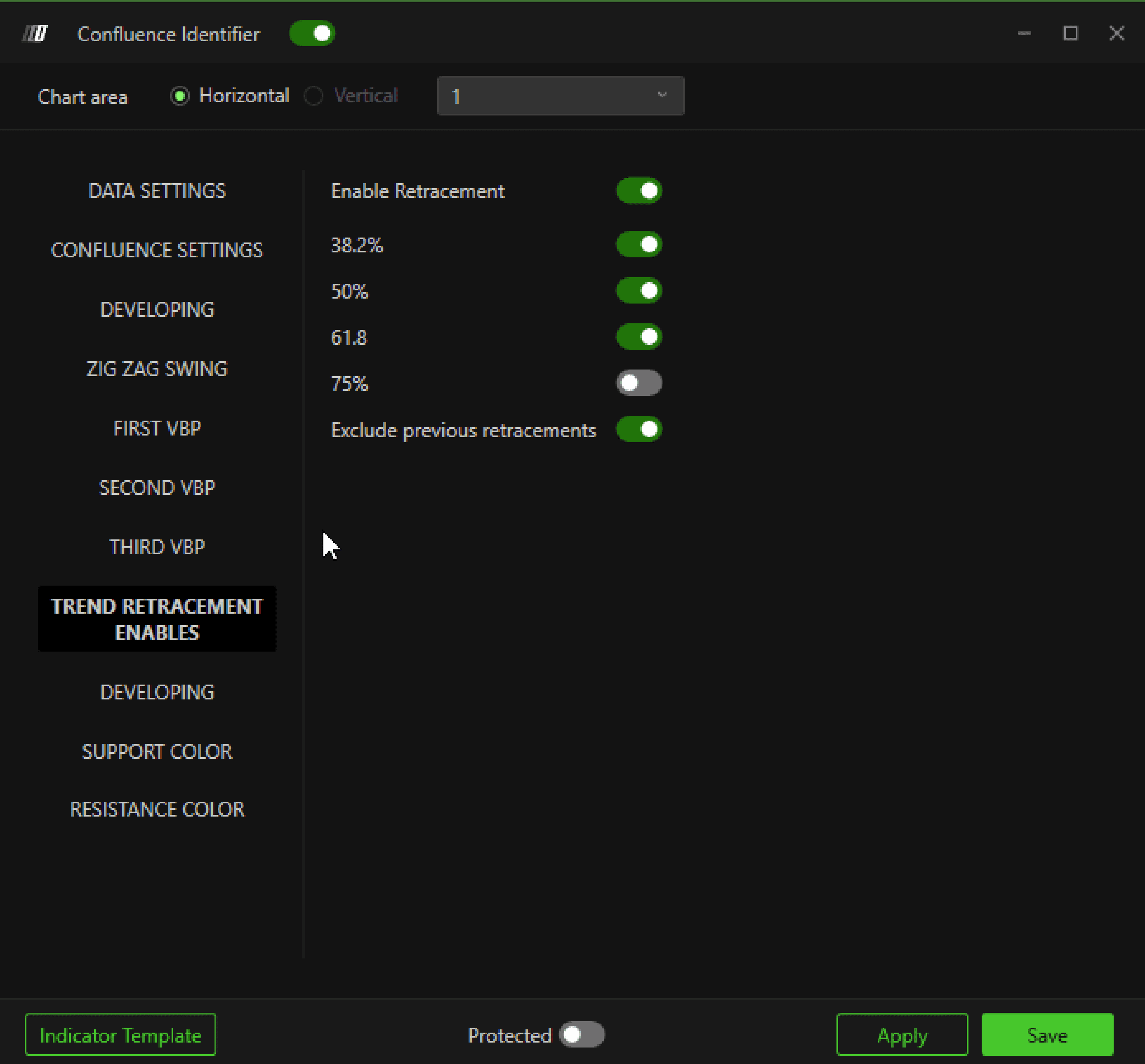 The second Zig Zag identifies swings used for confluences and should use a smaller percentage to include minor swings.