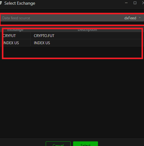 In the list if you already see your preferred exchange, make sure to right click on the row of your exchange and the Data Feed Column. Then you can change the data feed source and press set.