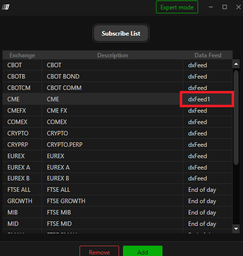 If you do not see the preferred exchange, you can select Add and search for your exchange and set the Data feed Source above