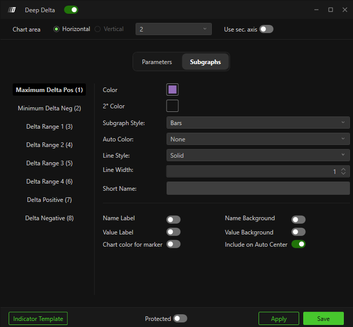 Allows you to customize the colors of the various Range as well as the shadow related to the Maximum Positive and Negative Delta.