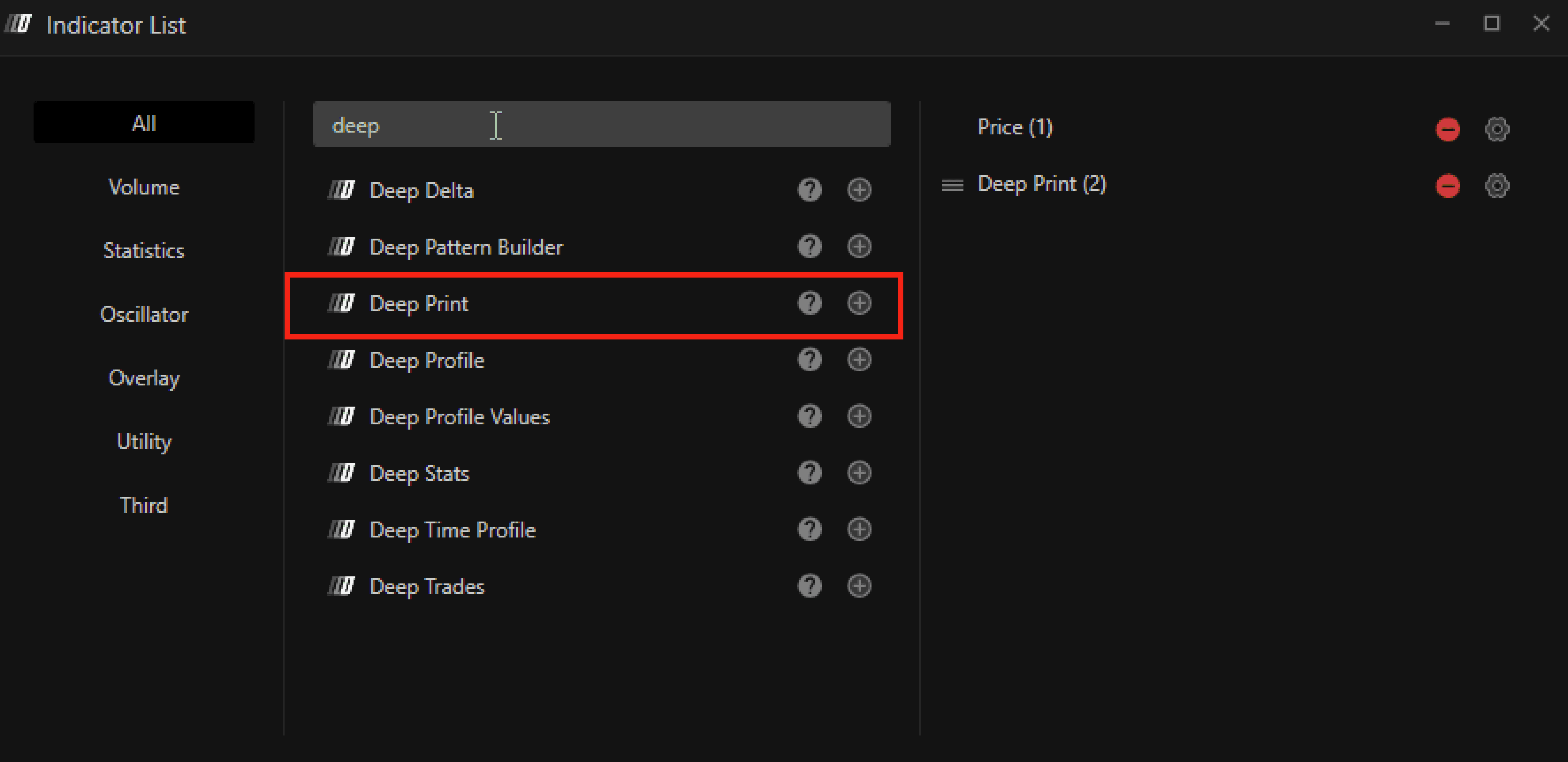 The Deep Print indicator from DeepChart, also known as Footprint®, is a core tool for volumetric and order flow analysis.