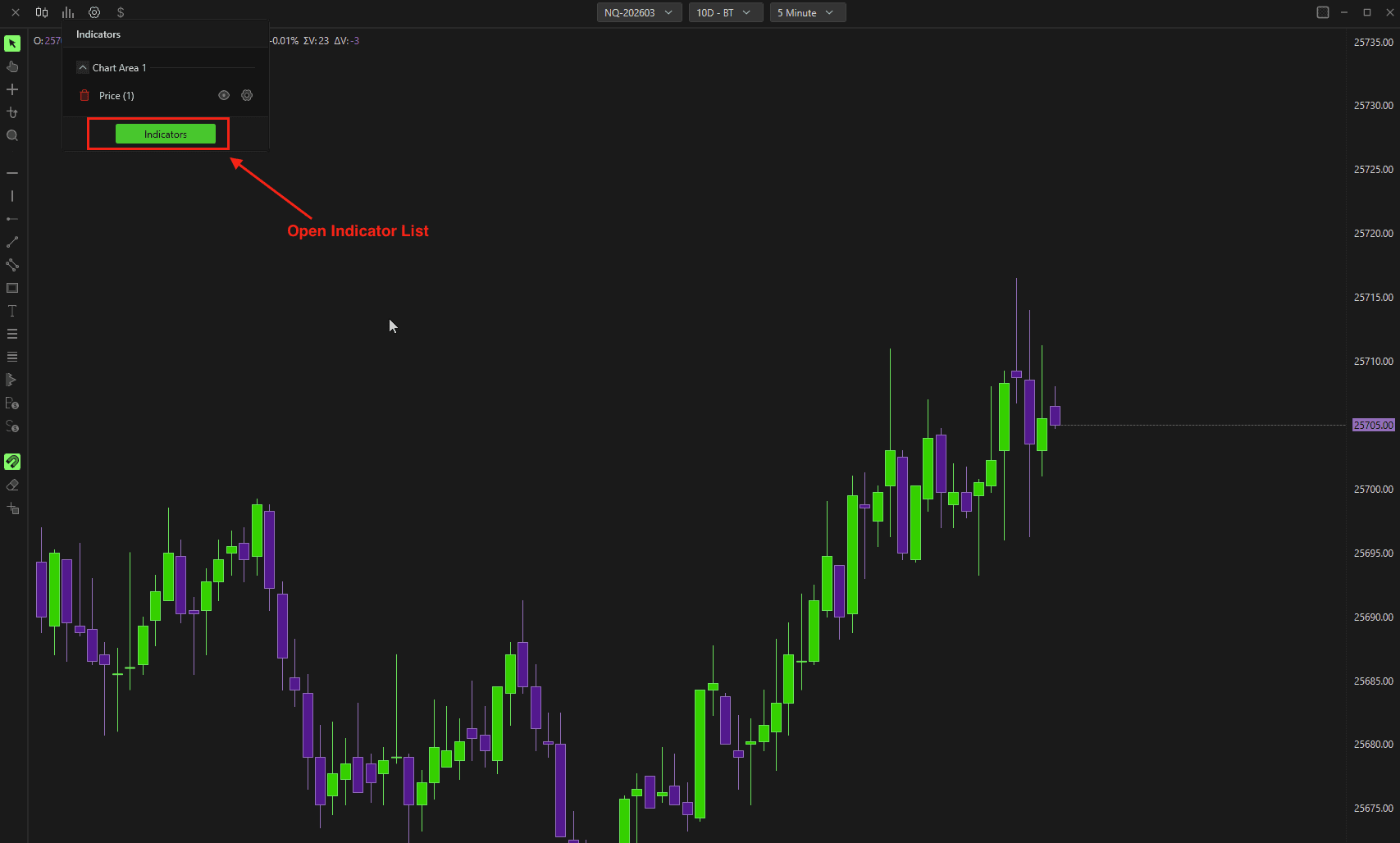 VolumeShows the total volume traded at each price level. This option helps identify the most active price levels in terms of the amount of orders executed.
