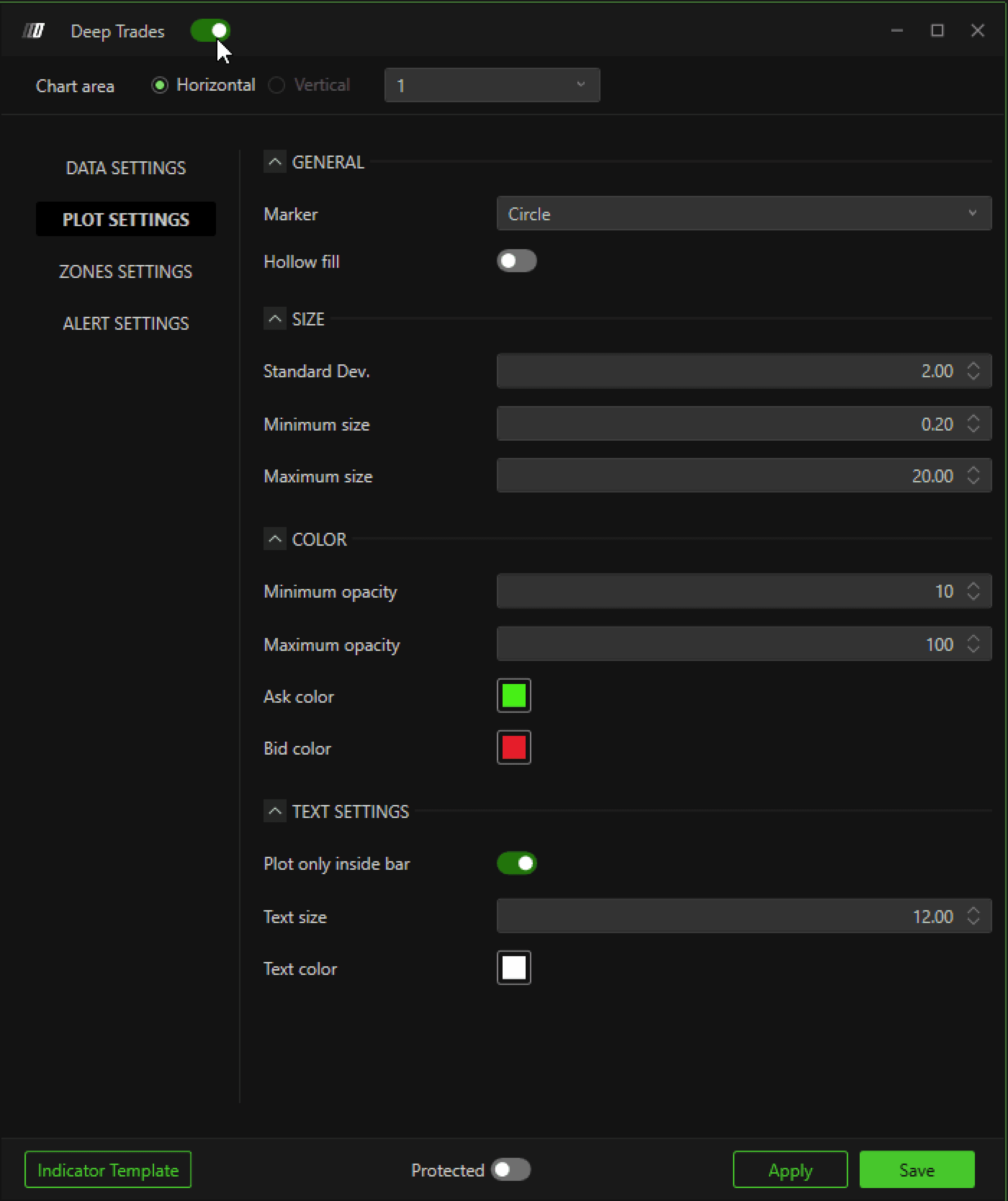 Customize how Deep Trades appear on the chart.