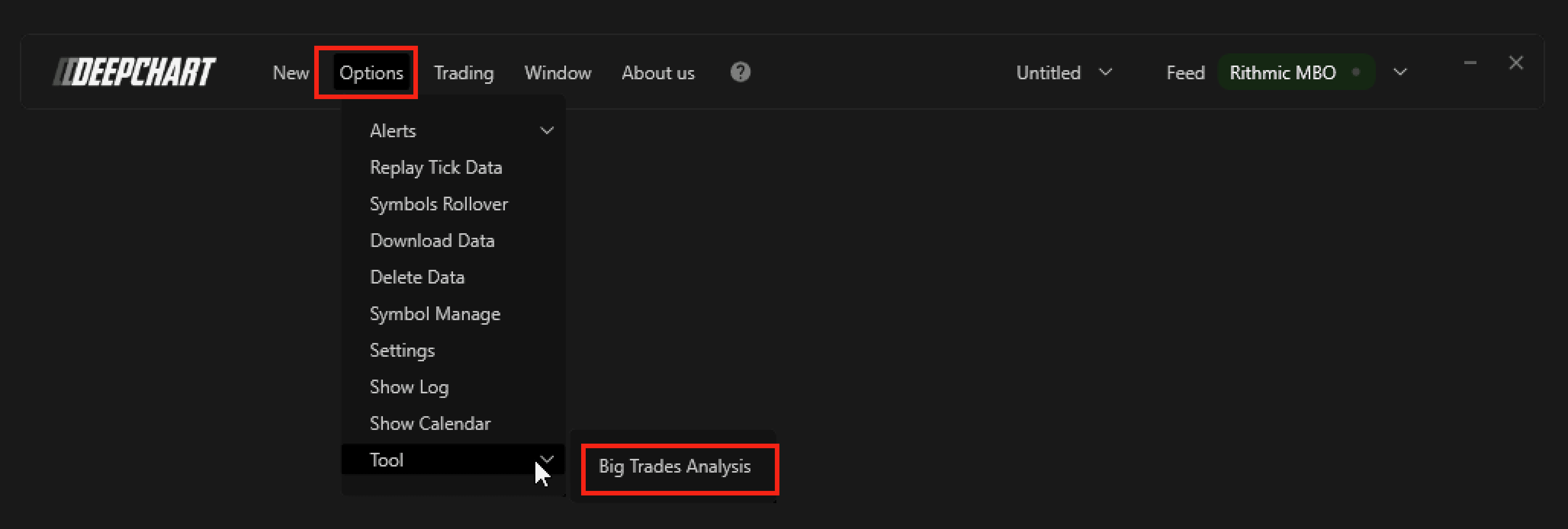 Go to Options → Tools → Big Trades Analysis
