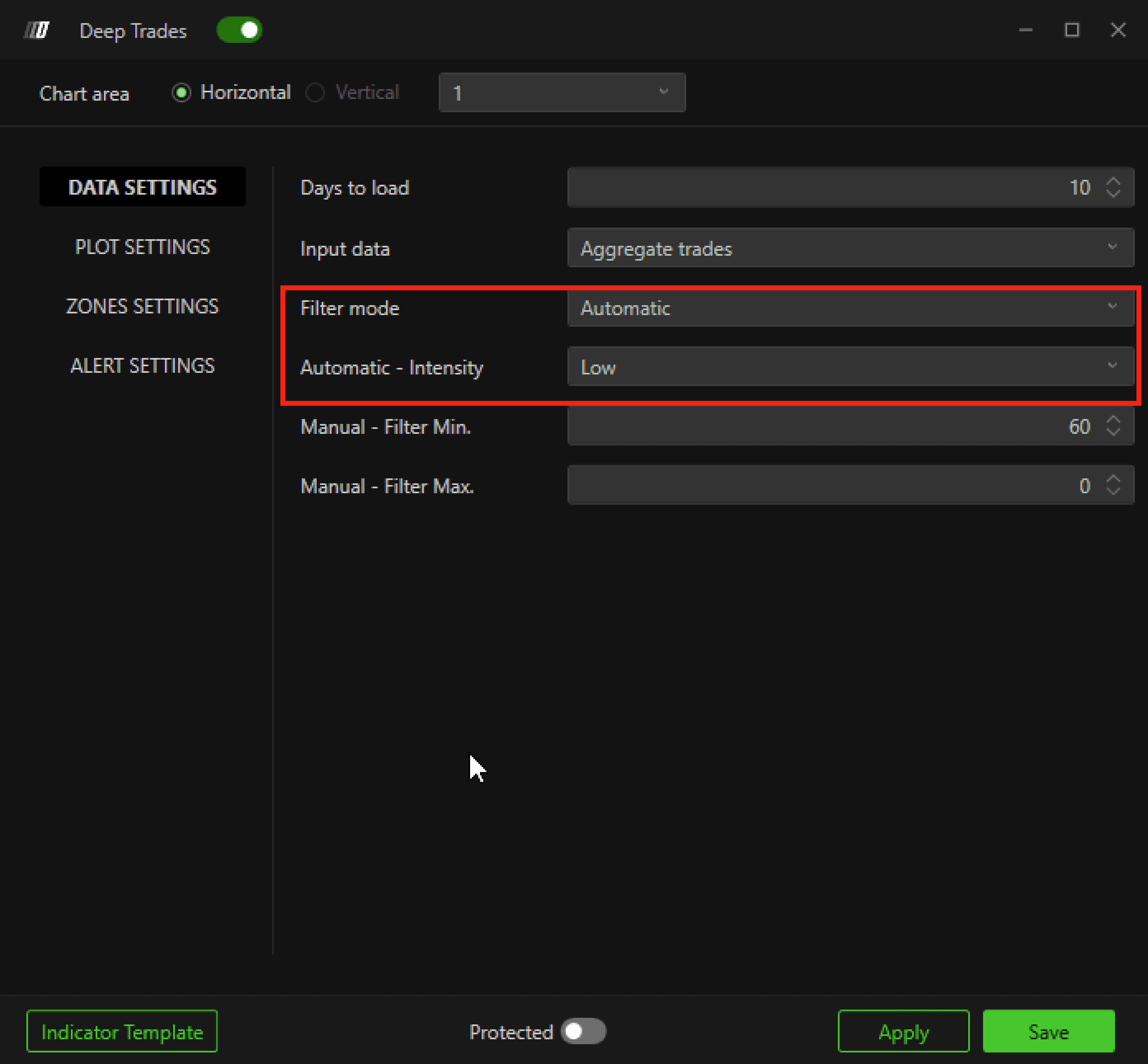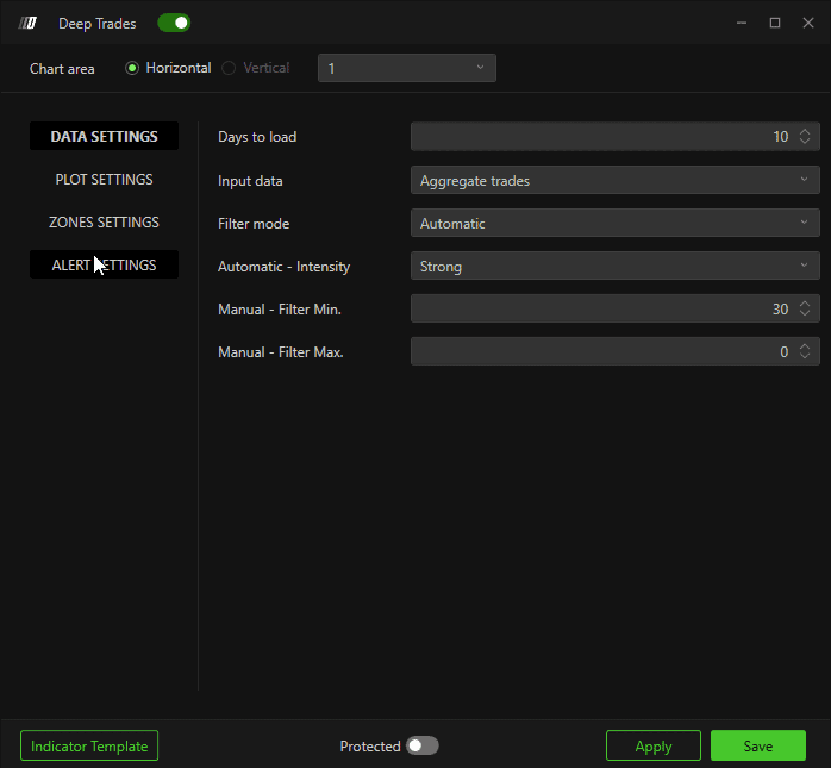 Apply the Deep Trades indicator to your chart