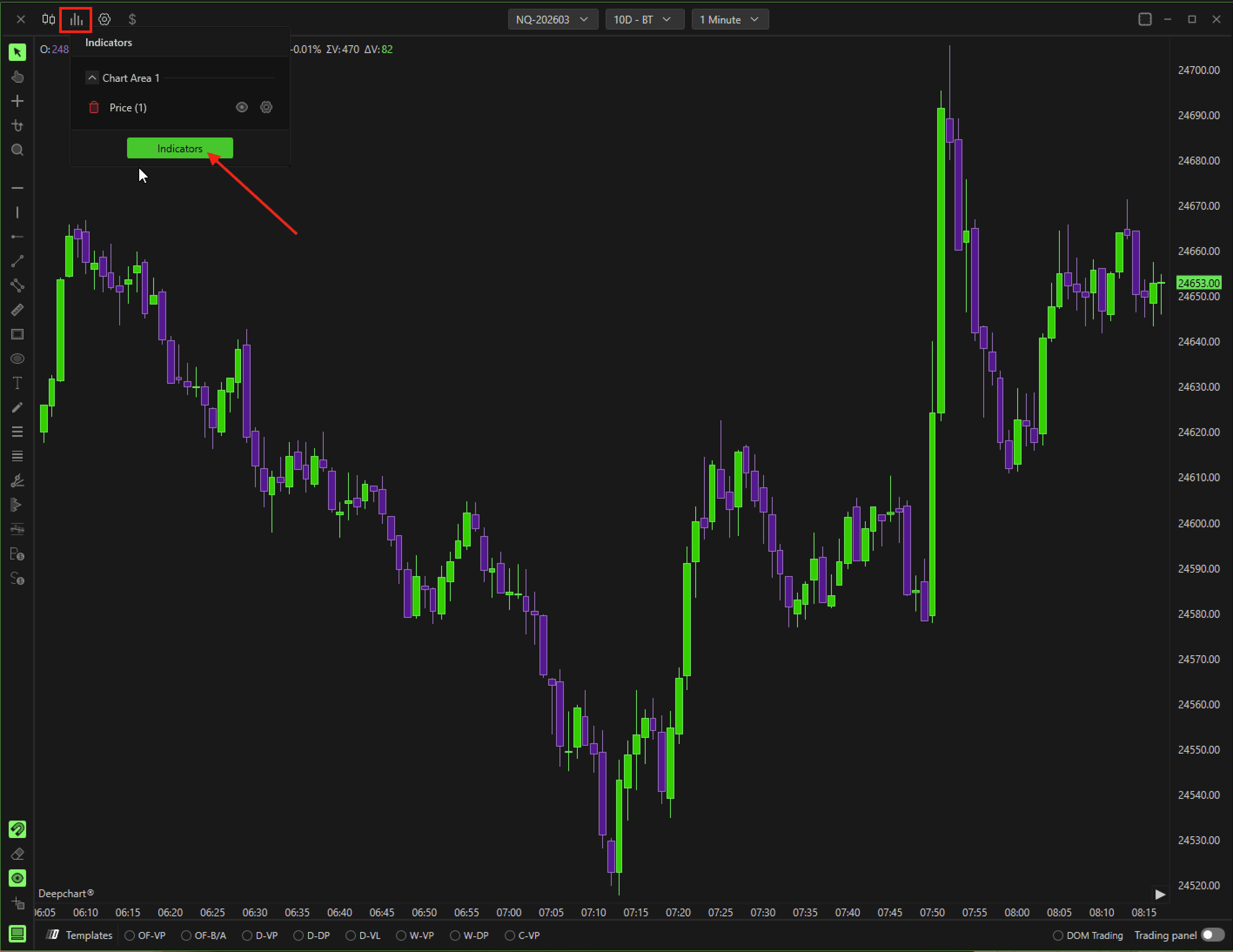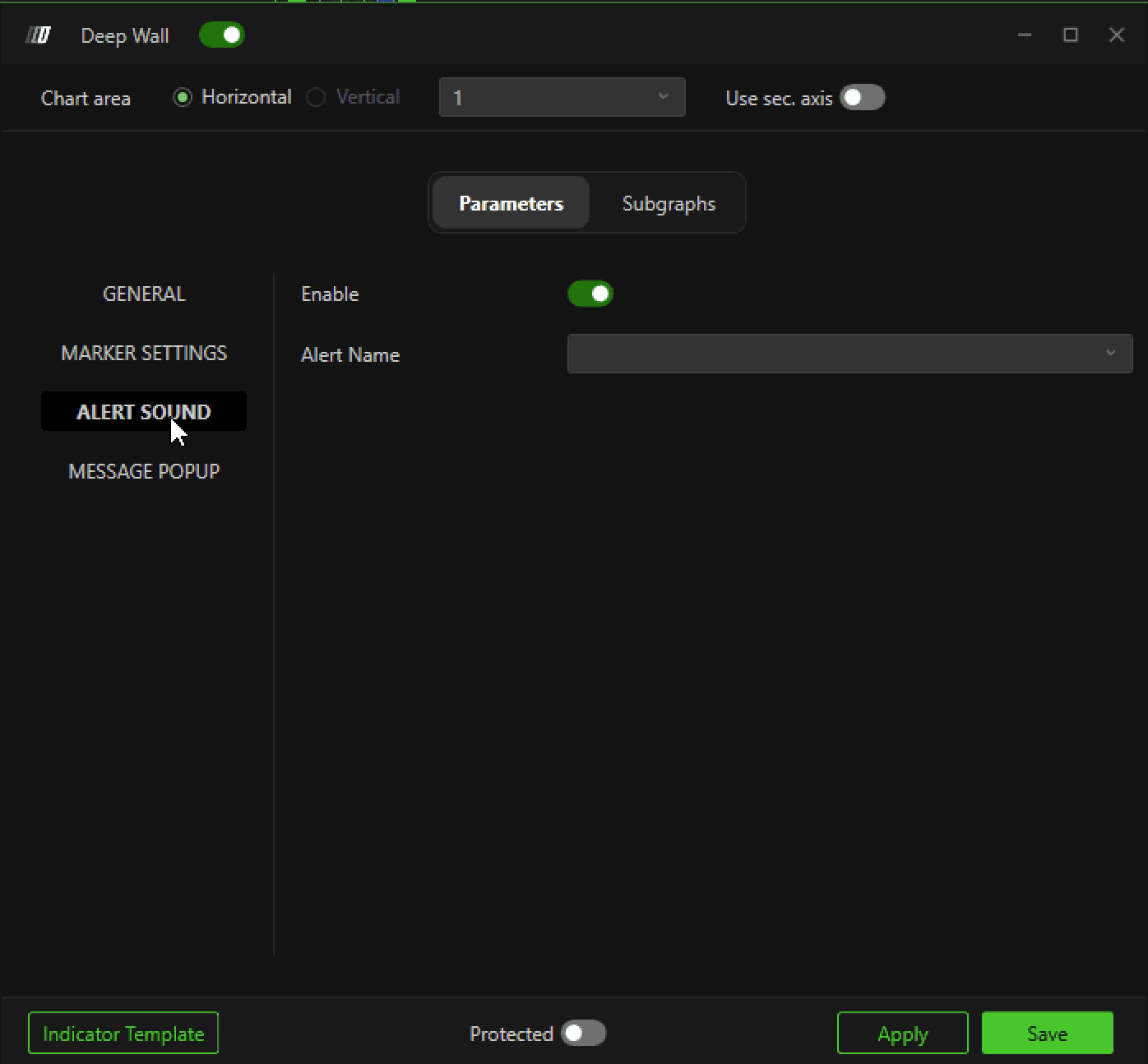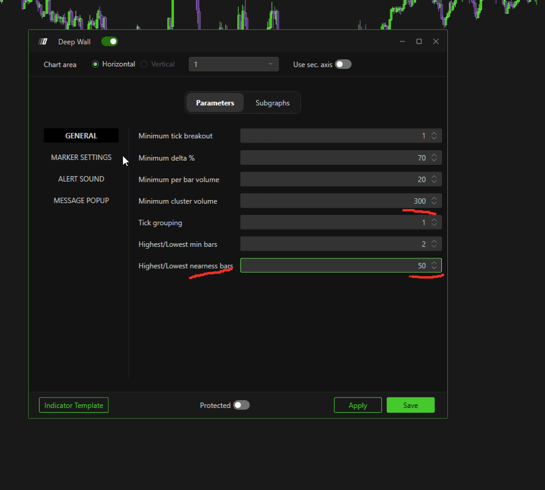 Click the Settings icon next to Deep Wall to configure the indicator.