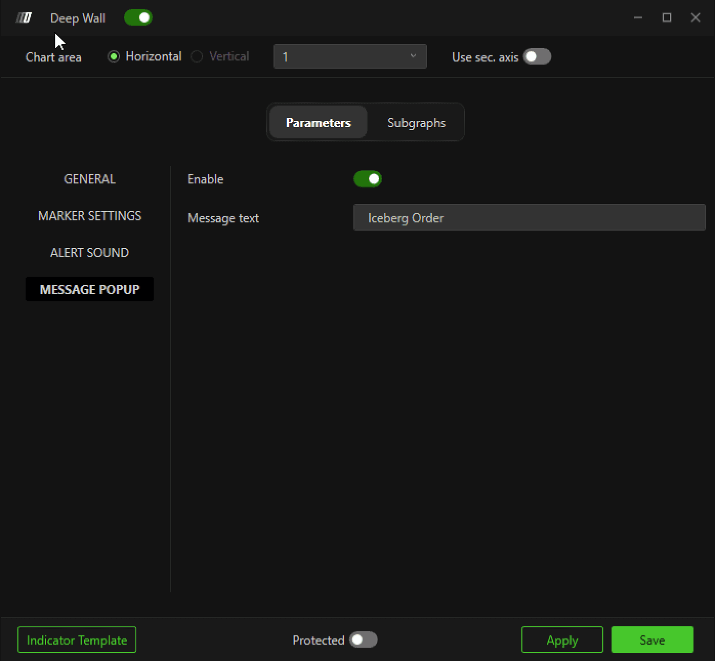 You can also configure a popup message when a Deep Wall event is triggered. This helps ensure you never miss a high-probability iceberg detection.