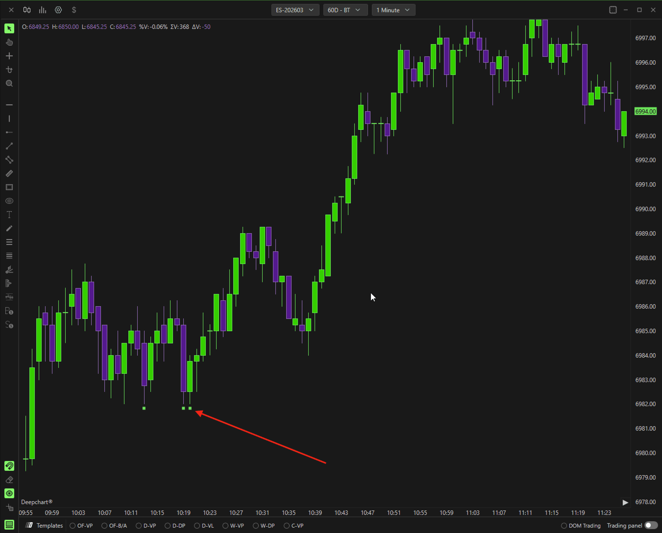 This behavior often signals the presence of a hidden (iceberg) order. Unlike other patterns, Deep Wall does not appear frequently—it is mostly seen in low-liquidity environments such as the London session, appearing only a few times per week or month.