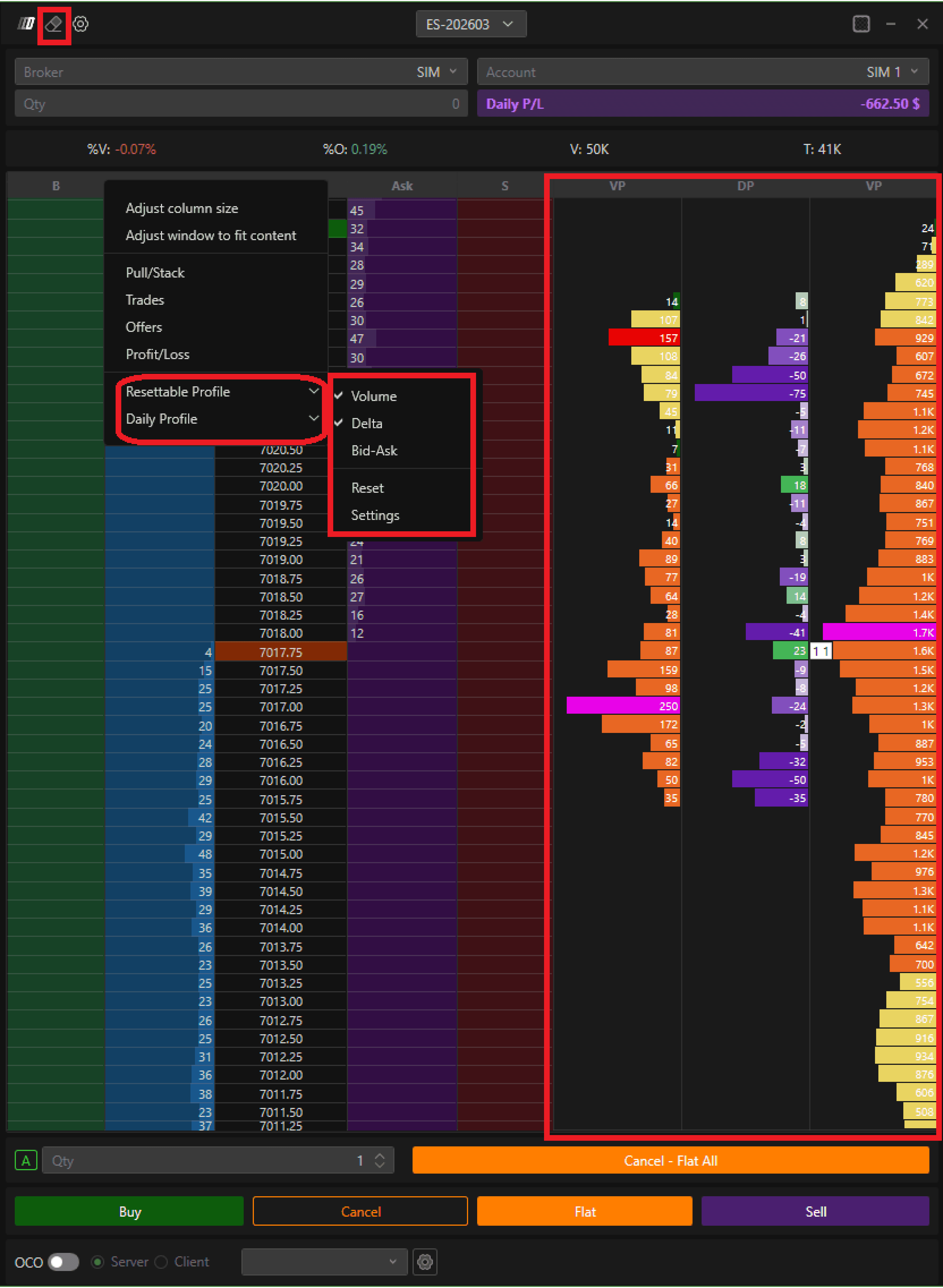 The Advanced DOM (Depth of Market) in Deepchart provides a powerful, professional-grade interface for order execution, market depth analysis, and volume profiling.