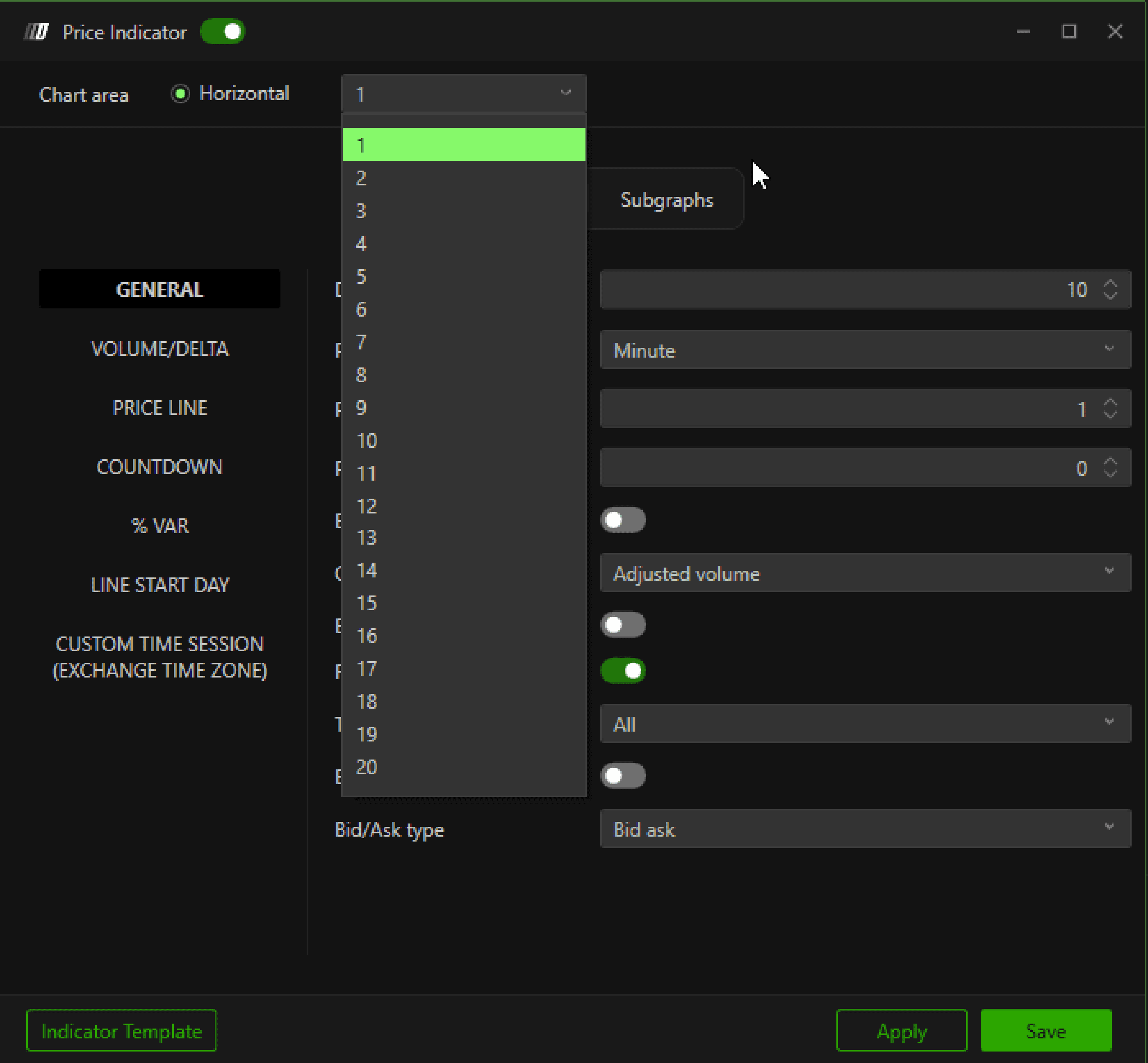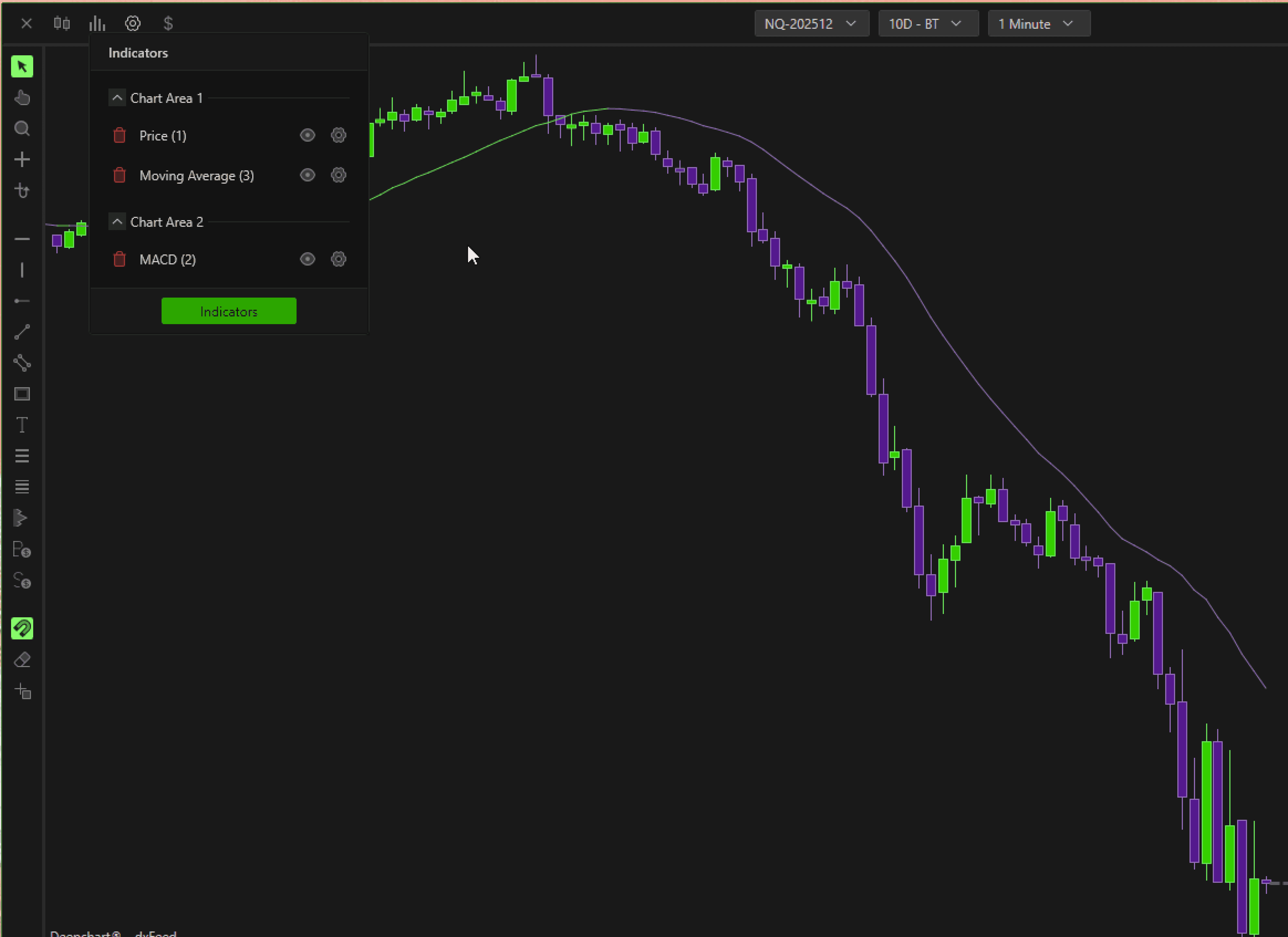 Your DeepCharts window is divided into sections based on the number of indicators you’re using.