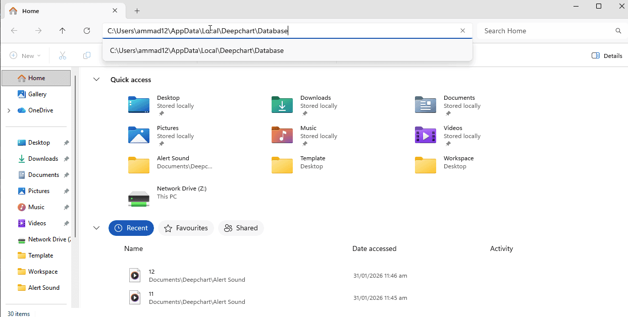 If deleting data from the software does not fix the issue, the symbol’s data files may be fully corrupted. In this case, you must manually delete the data folder so DeepCharts can rebuild it.