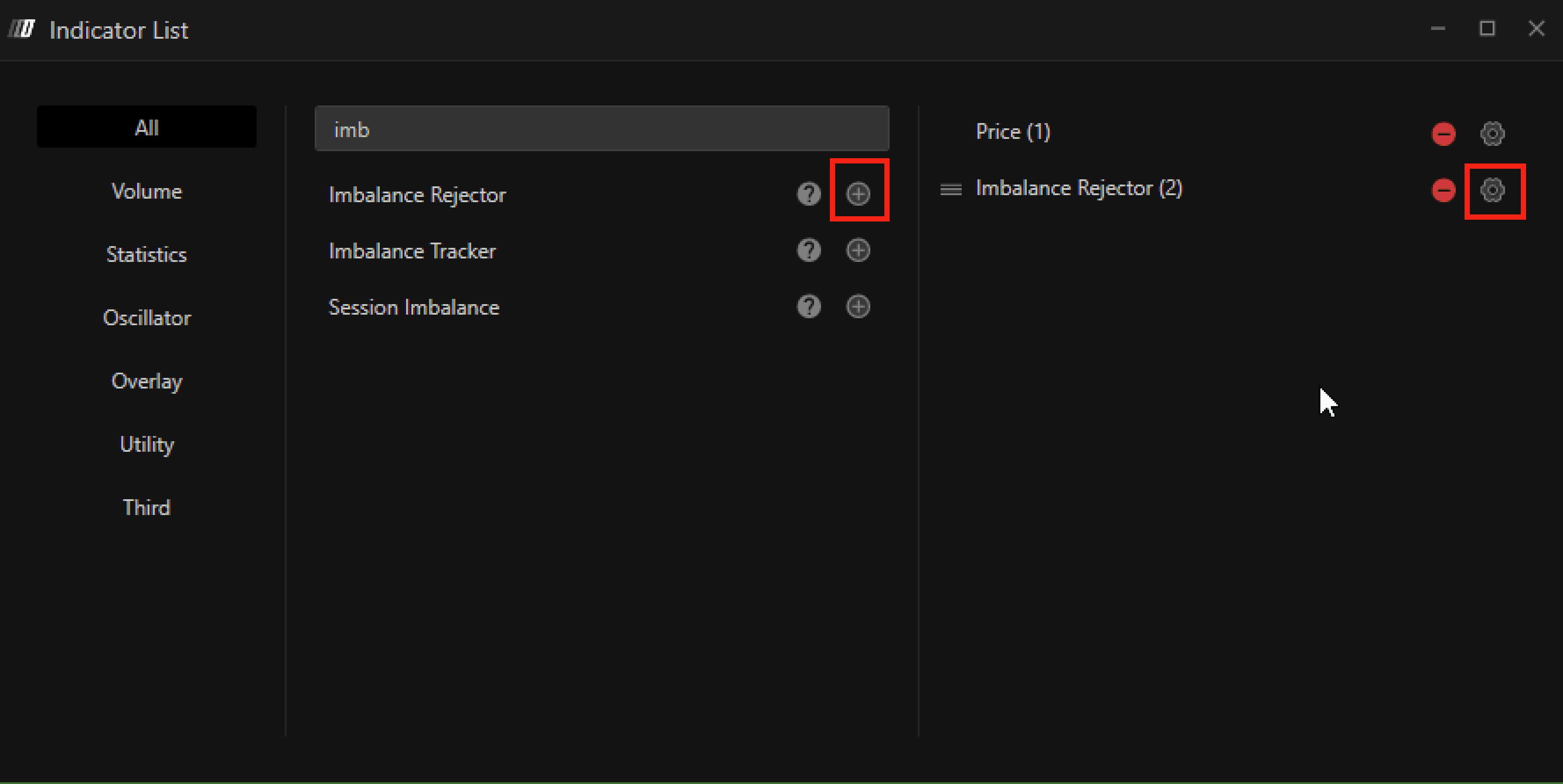 Clicking on the indicator's settings icon will open its configuration window, within which it will be possible to make several choices regarding the functionality of the indicator itself.