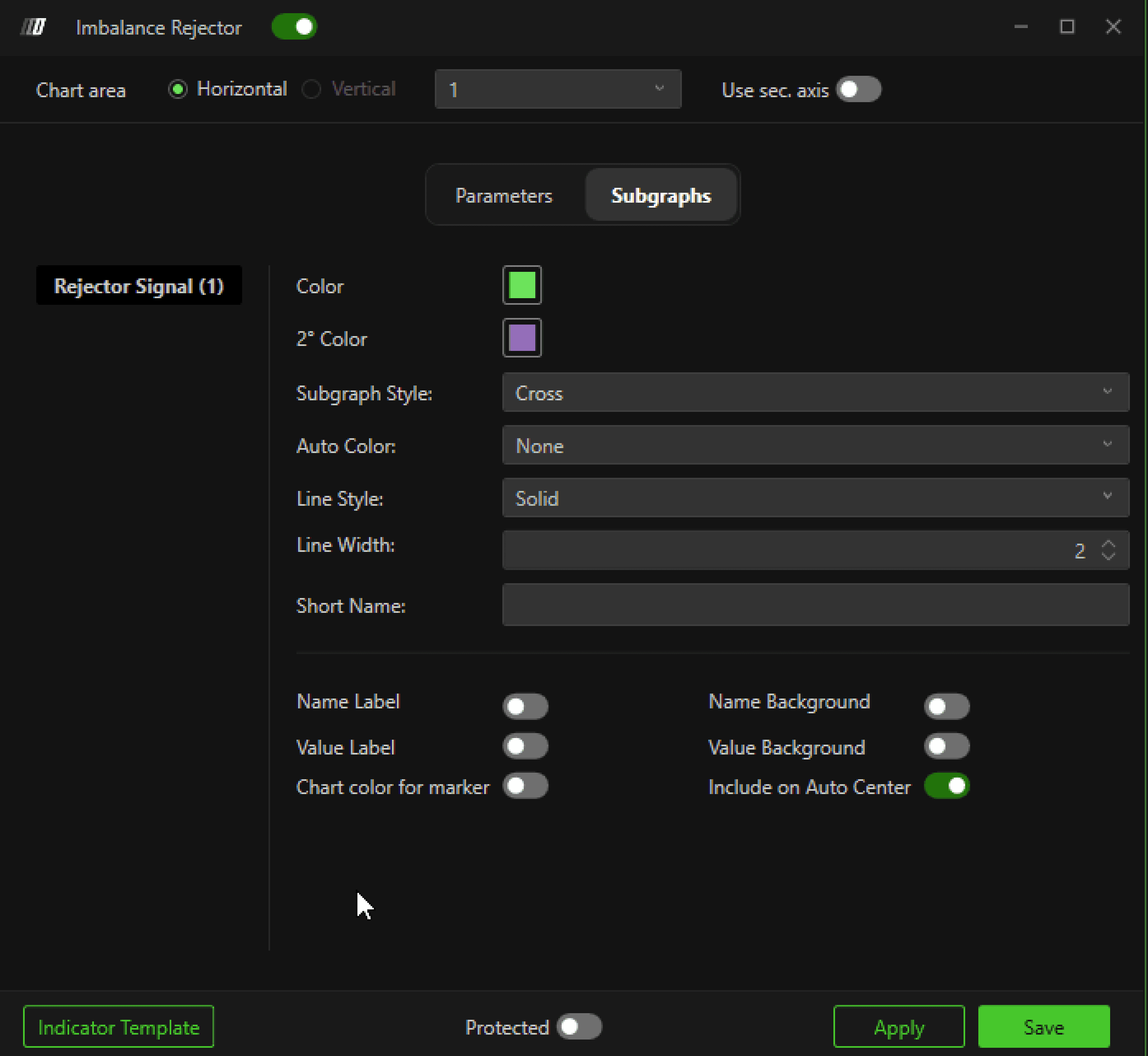In this section it is possible to change the color of the marker, differentiating between bullish and bearish signals. You can also change the type of marker, choosing between square, circle, diamond, triangle, and cross, as well as the thickness of the same.