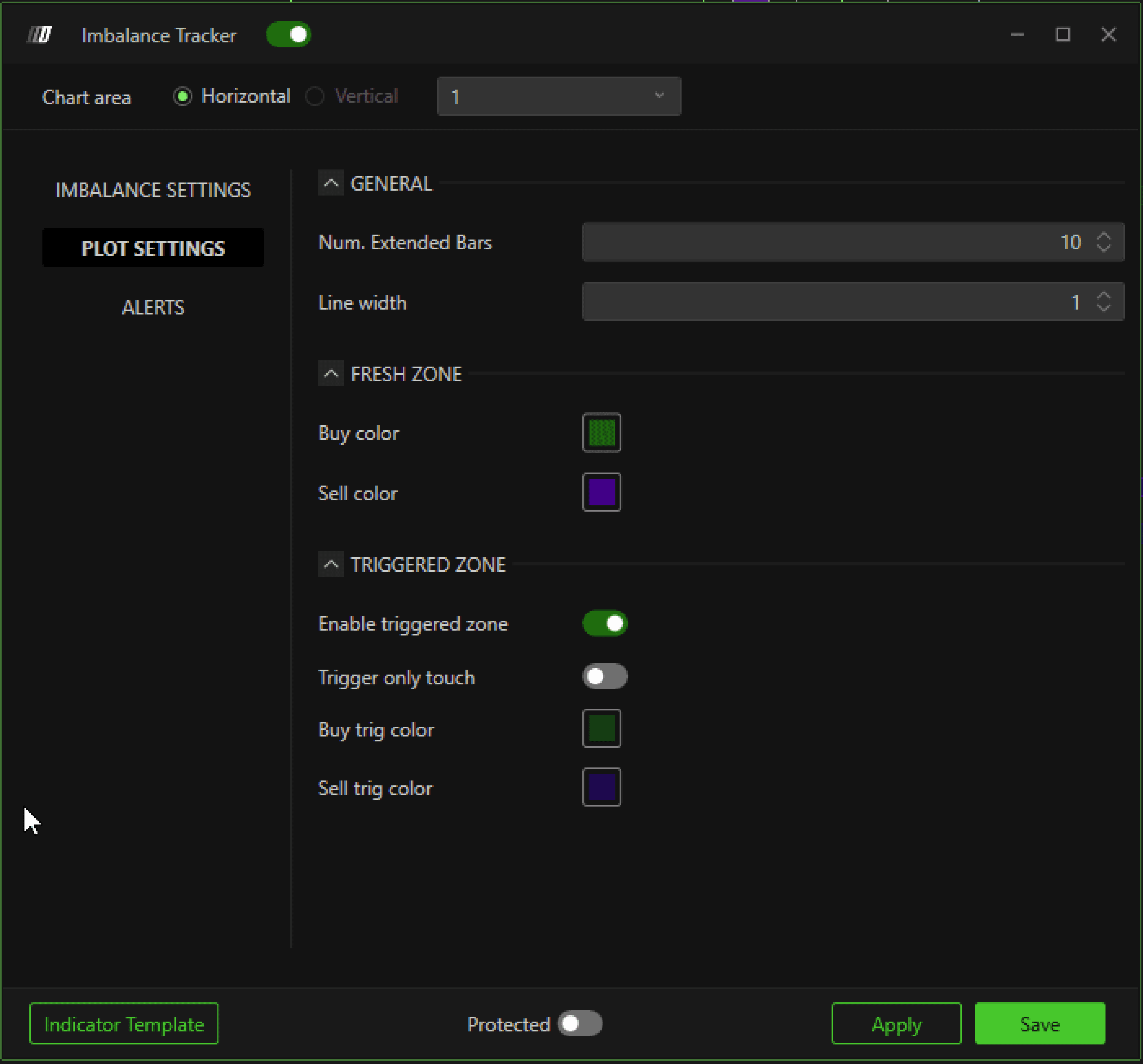 Buy Trig Color: Lets you select the color for the purchase crossed imbalance zones