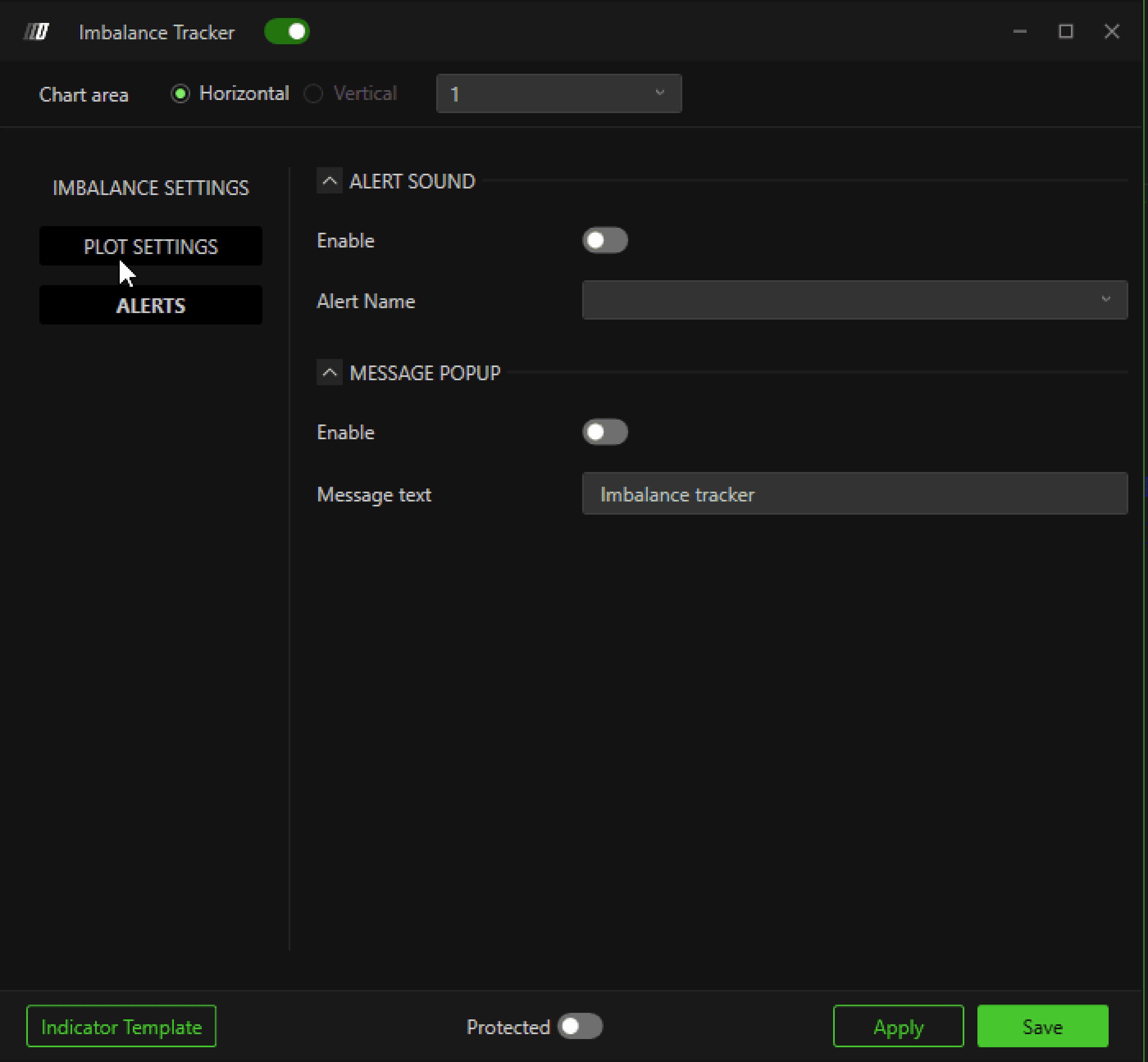 Enable: This option enables or disables sound/Popup notification for the indicator. When enabled, an audible notification is issued whenever an event defined by the imbalance