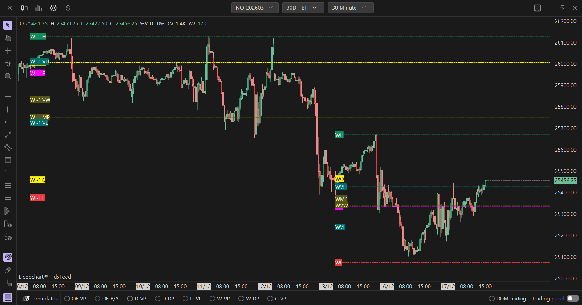 The Important Levels indicator allows you to highlight the most important price levels on a daily, weekly, and monthly basis. This indicator is particularly useful in intraday charts, as it allows the user to always have the highs, lows, opening and closing prices, POCs, value areas, VWAPs, and average values of the periods enabled easily visible on the chart.
