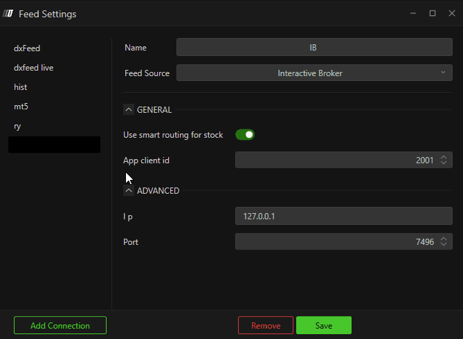 Connect the IB feed