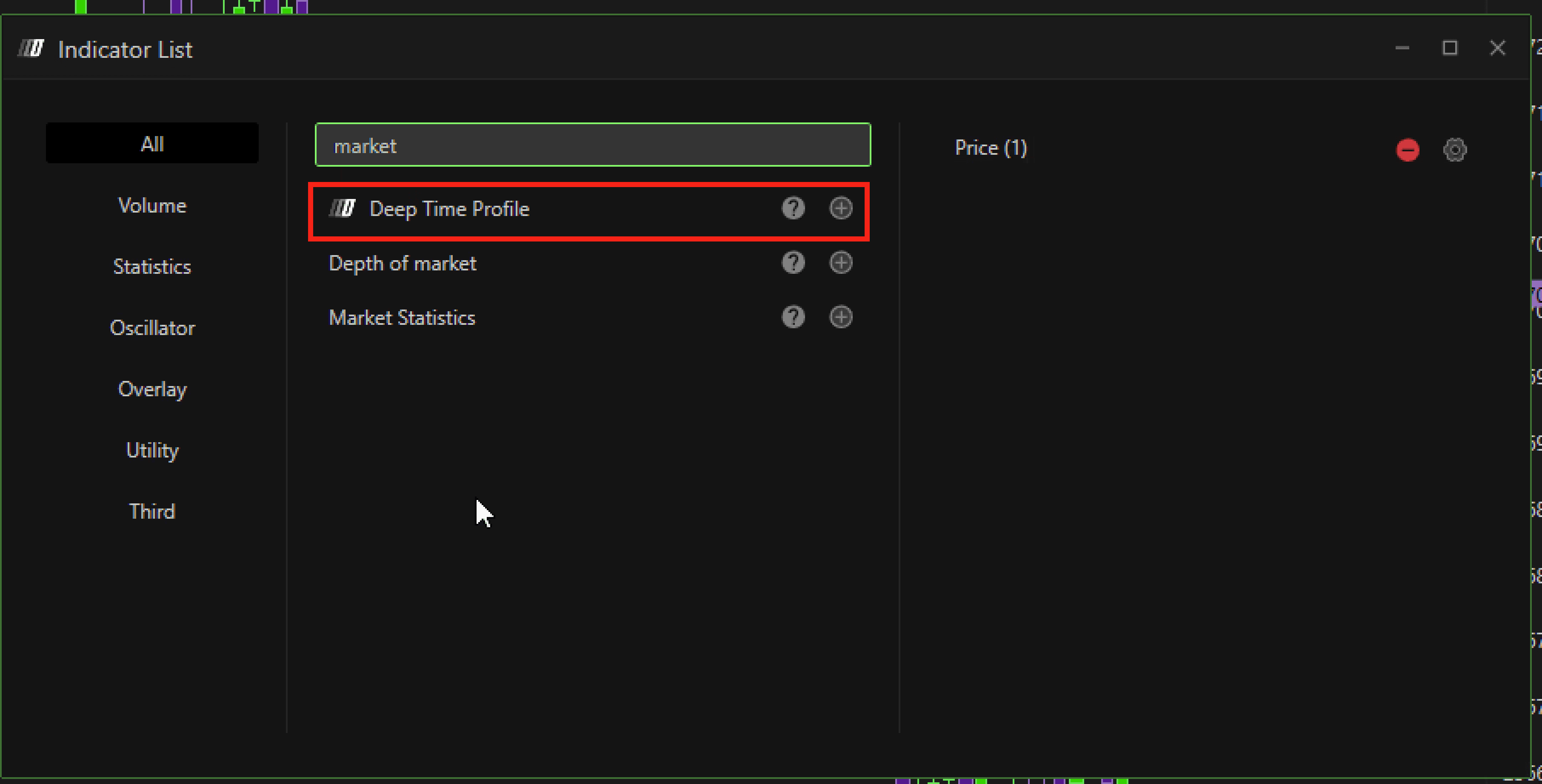 Profile: Displays a continuous profile representing the time distribution of price.