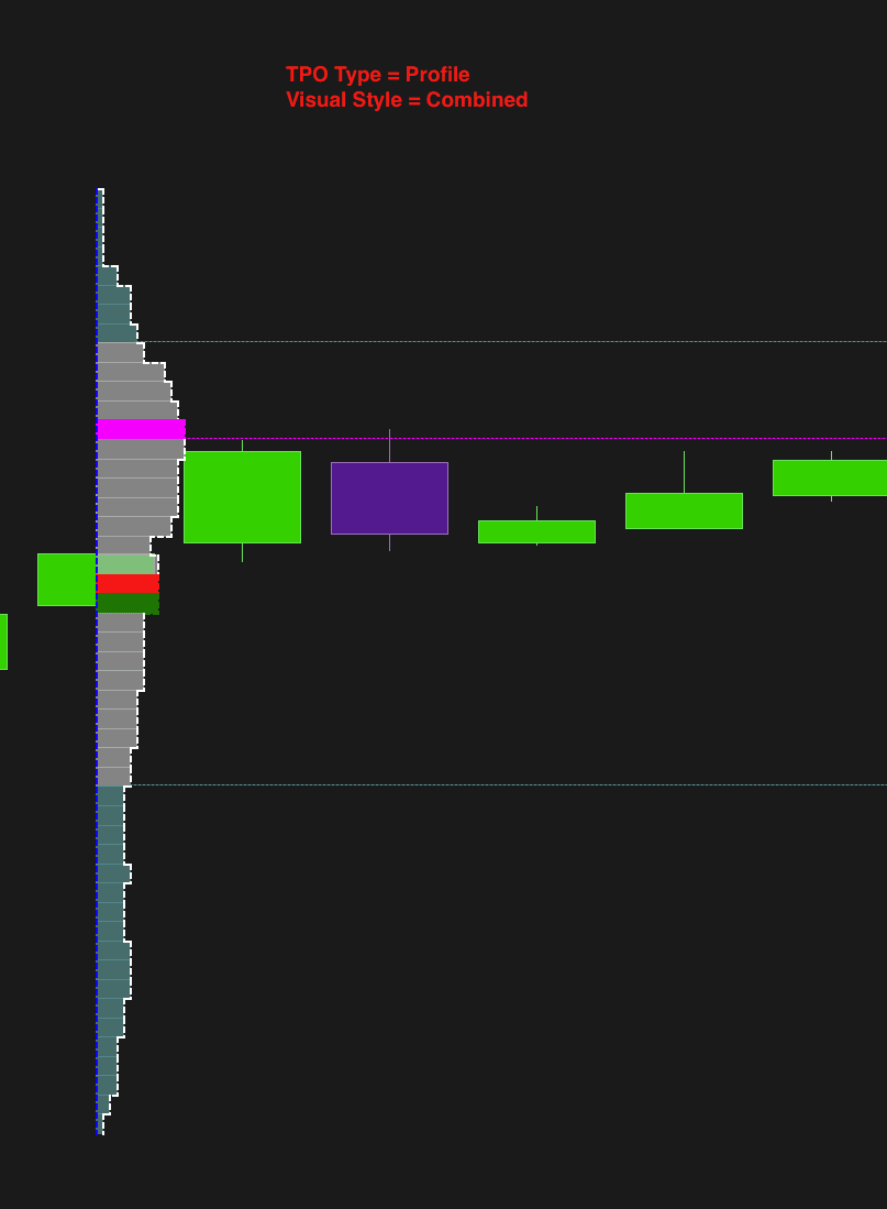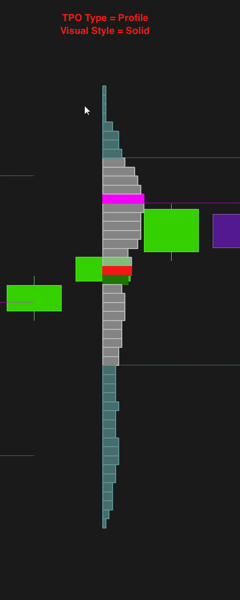 Uses a combination of styles (such as solid and line) to represent the volume profile in more detail. This style can be useful for displaying different information simultaneously, such as total volume and delta differences, facilitating a more complete analysis. (applies to the TPO- Profile type)