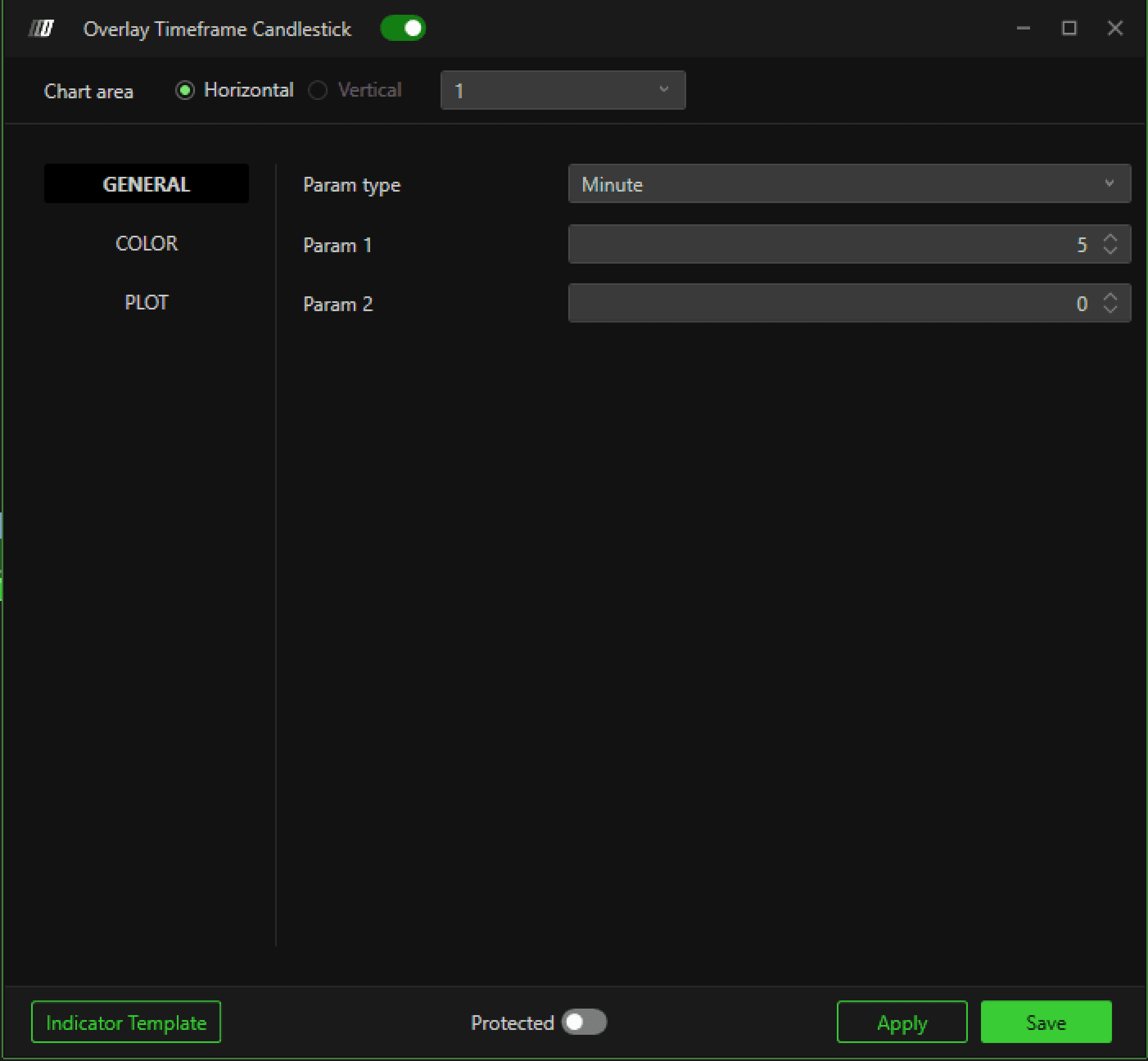 Example: 5 (if Param type = Minute → overlays 5-minute candles).