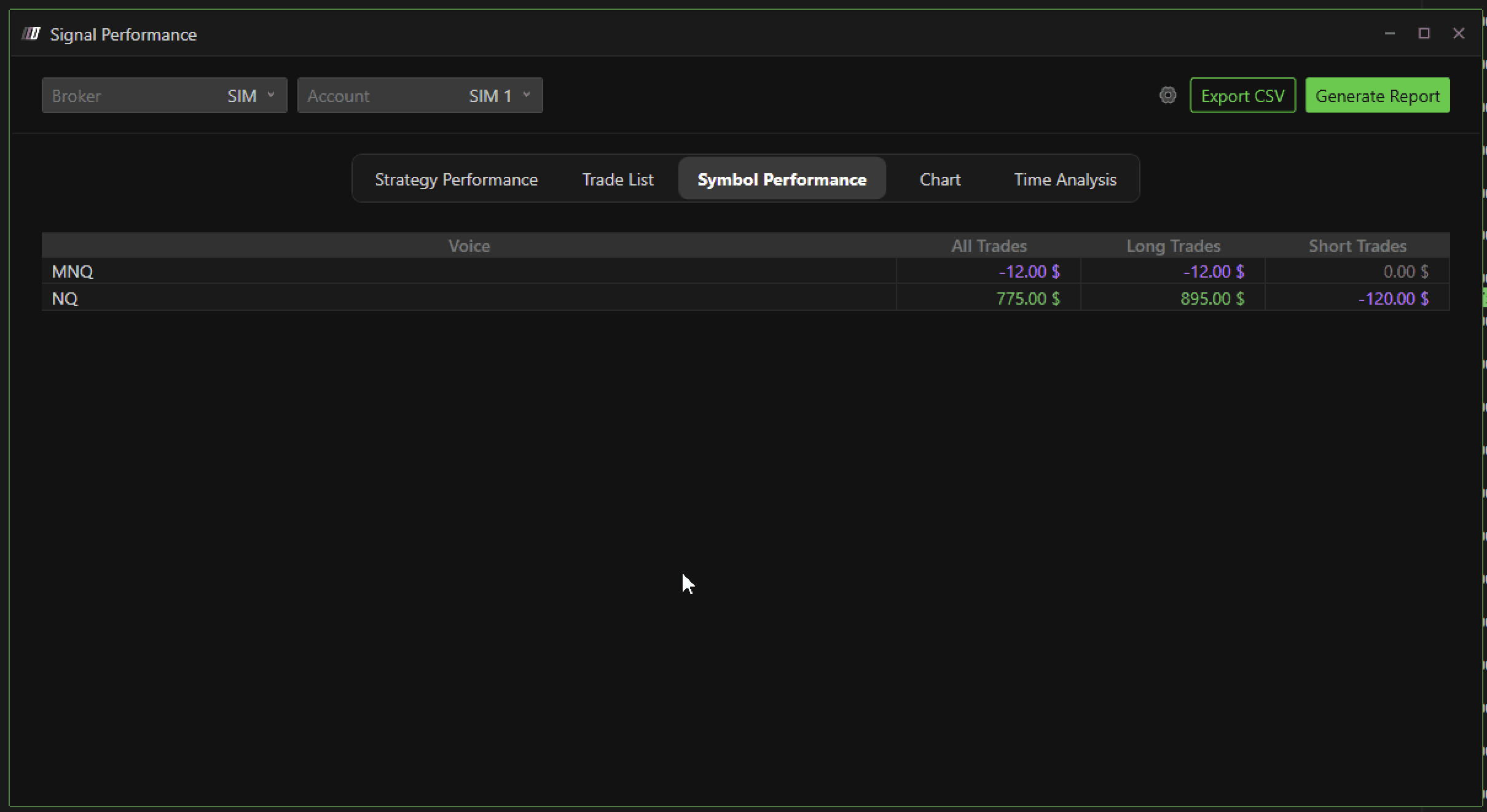 Symbol Performance