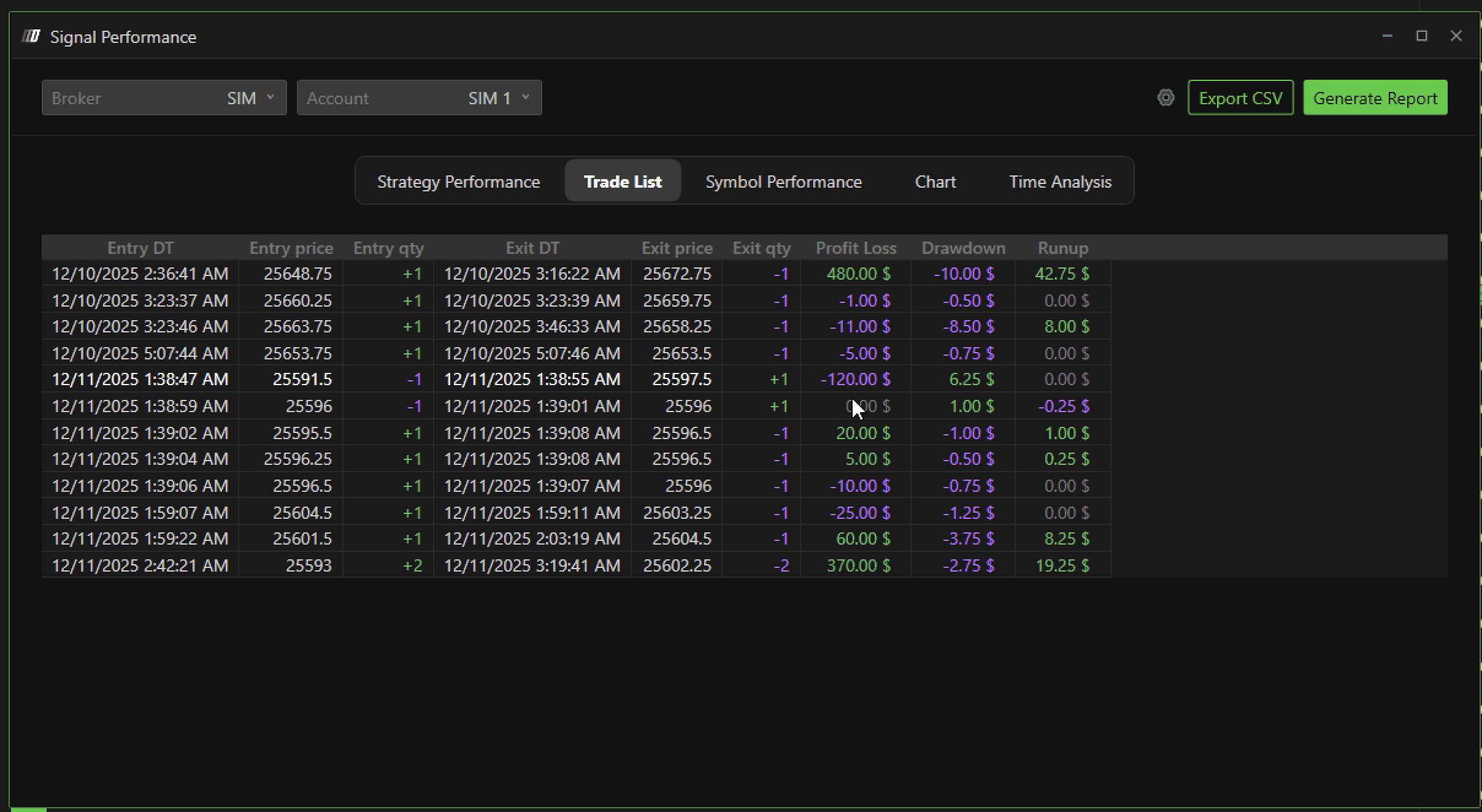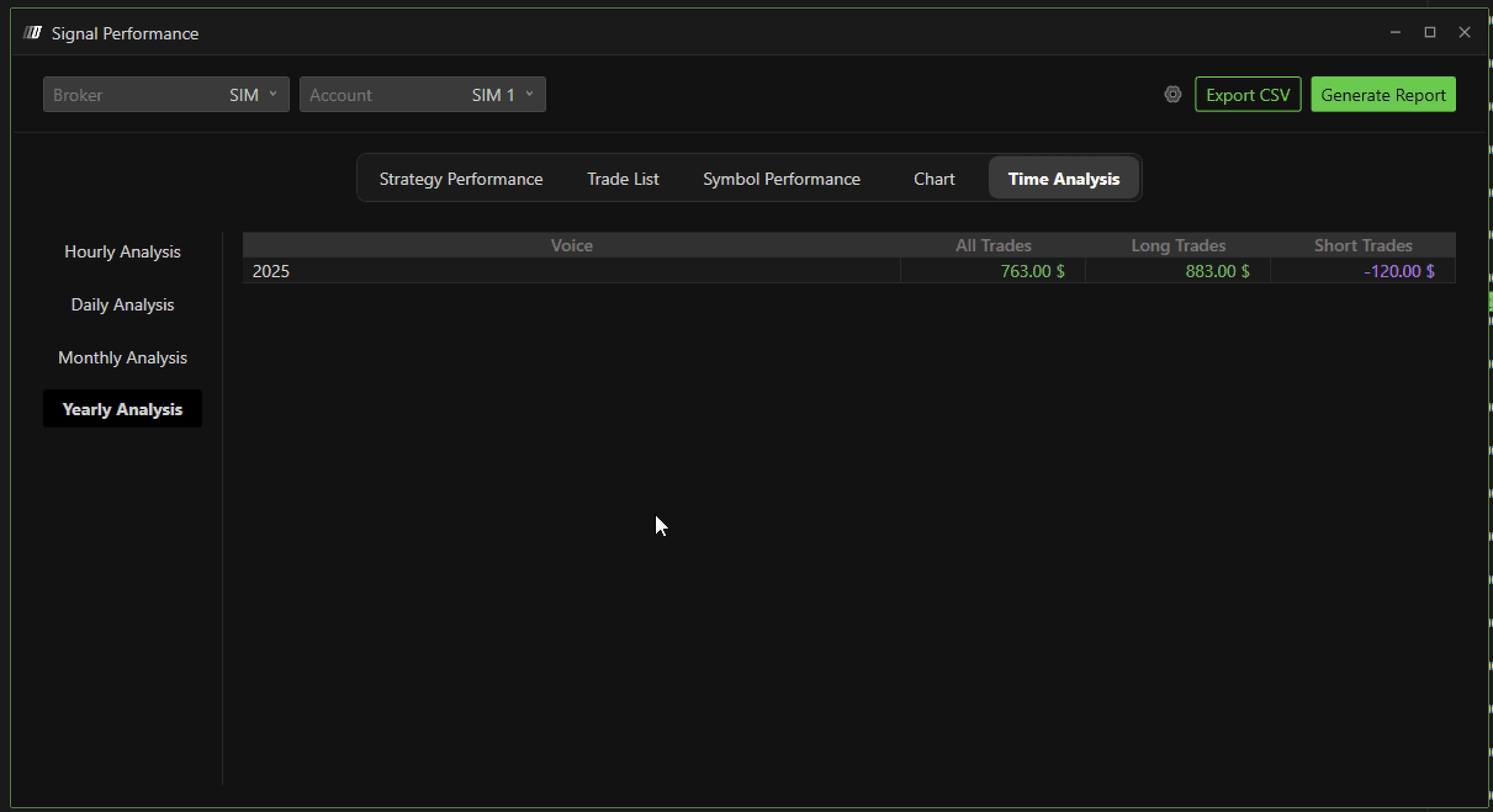 This helps you adjust your trading strategy, such as avoiding trades during low-performing hours.