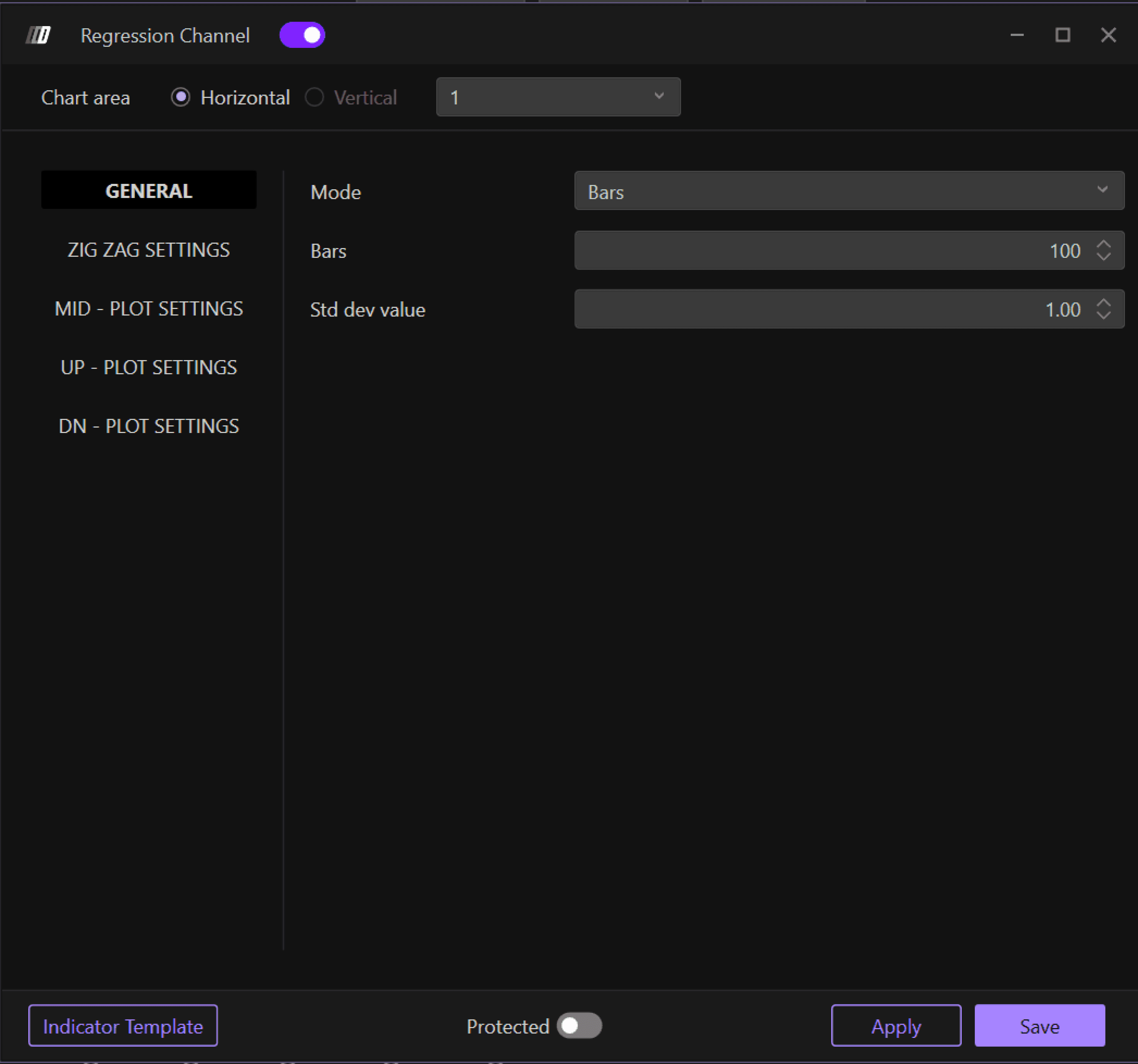 Allows you to change the mode of the indicator and choose the value of standard deviations: