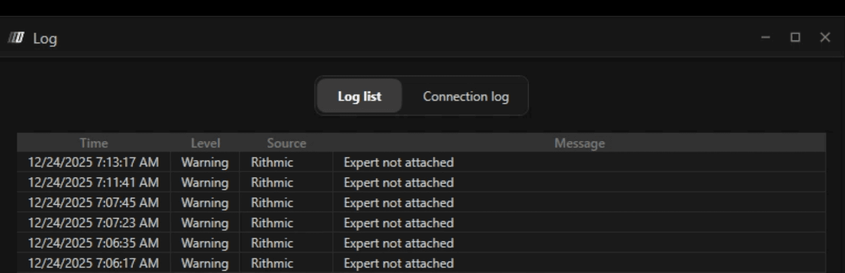 If you see the error “Rithmic: Expert not attached” or notice that the Rithmic data feed connection remains Yellow and does not turn Green, it means DeepChart is waiting for an external Rithmic component that is not running.