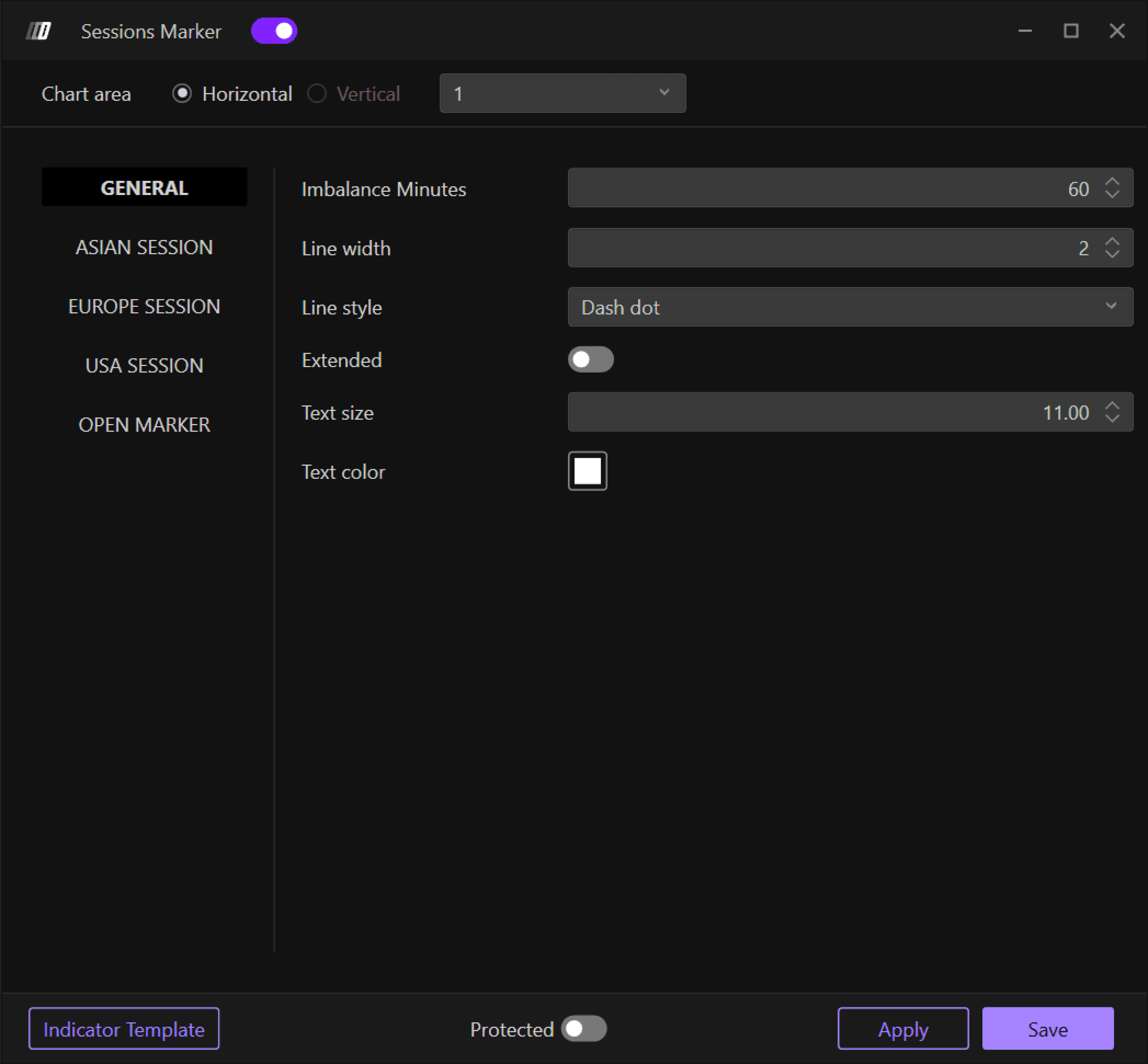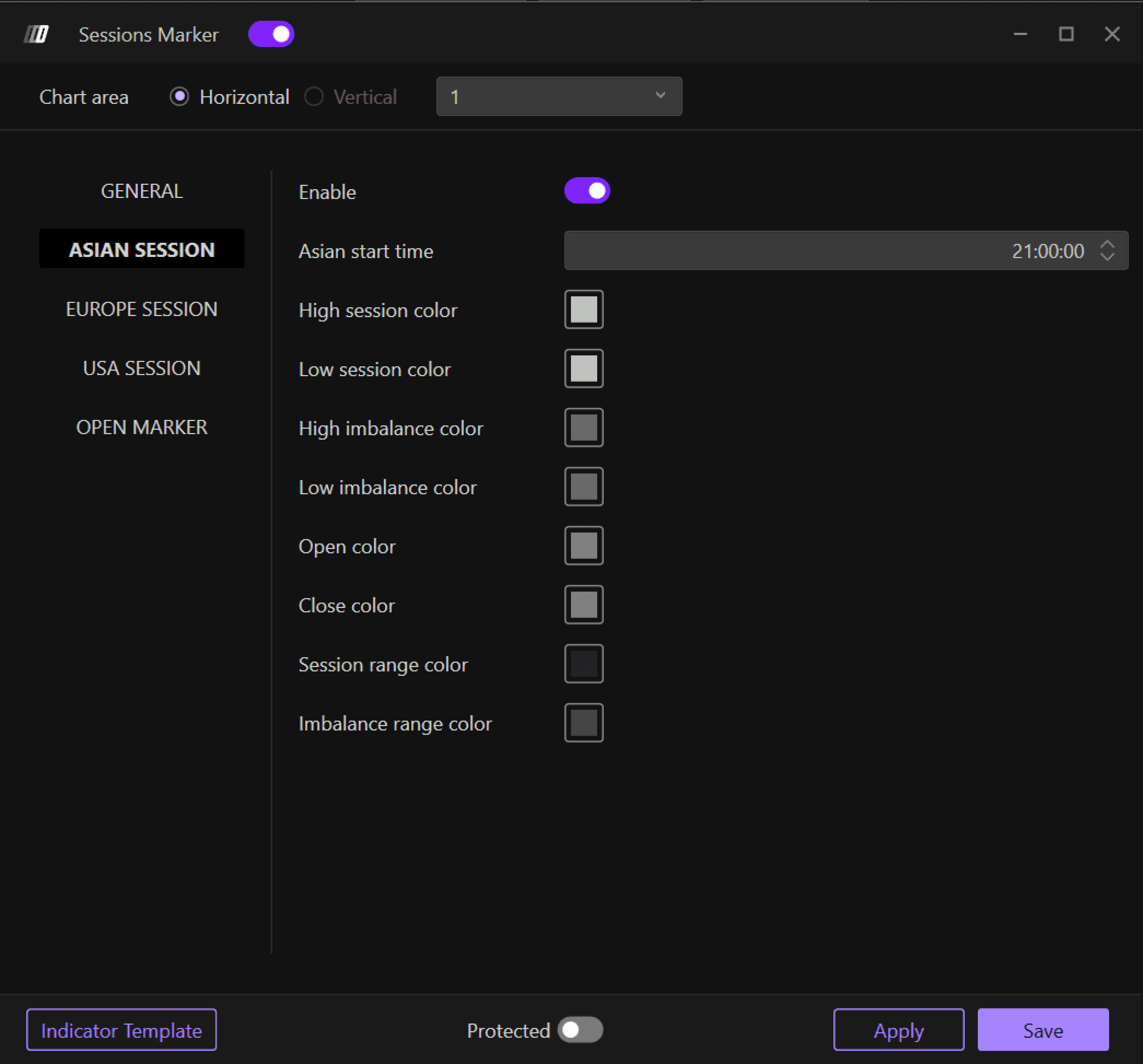Enable: Toggle the Asian session marker on or off