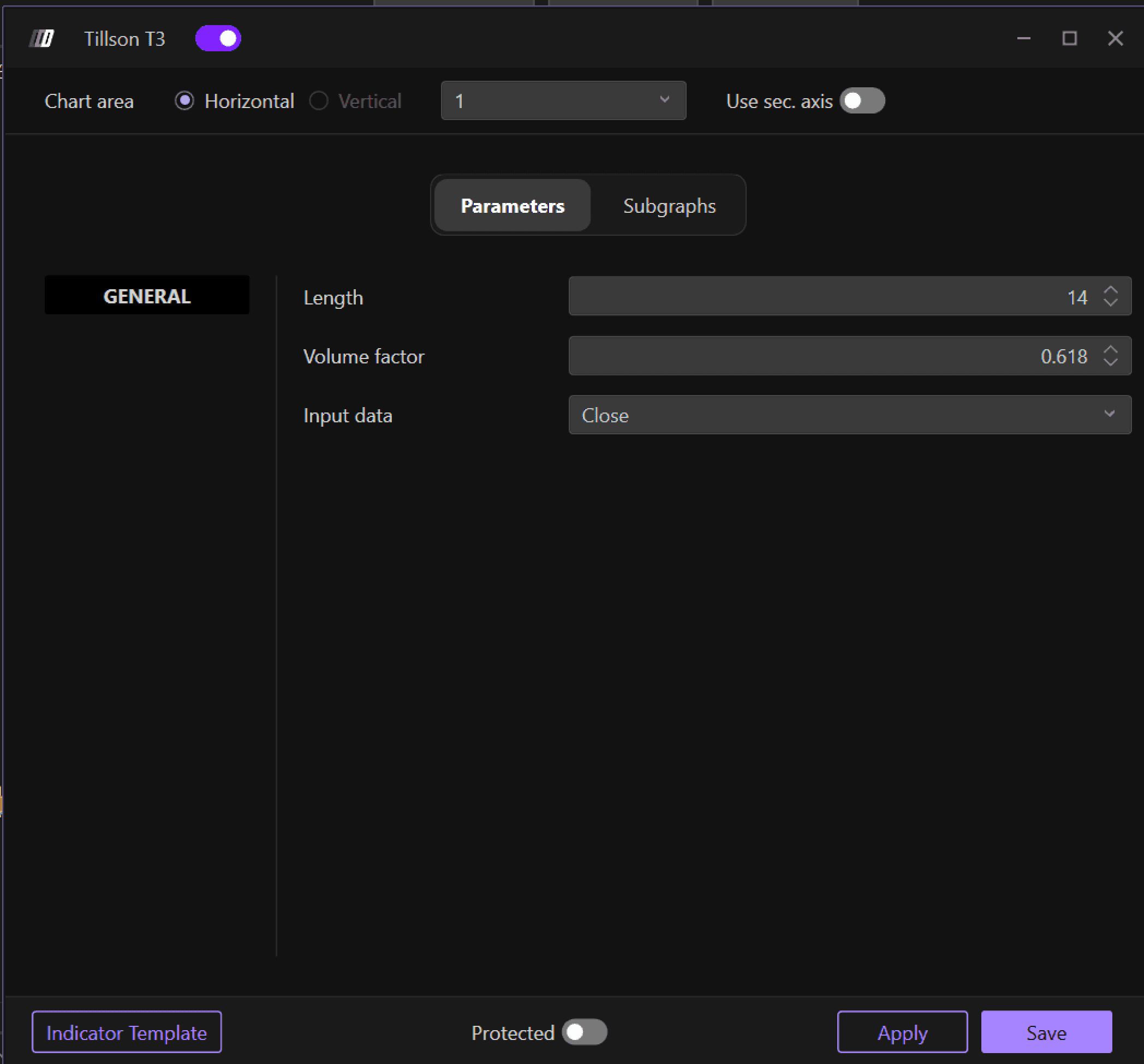 Defines the period length for the T3 calculation. The default value is 14. This parameter determines how many bars are used in the smoothing process. The length should be adjusted based on your trading timeframe and the volatility of the instrument being analyzed.