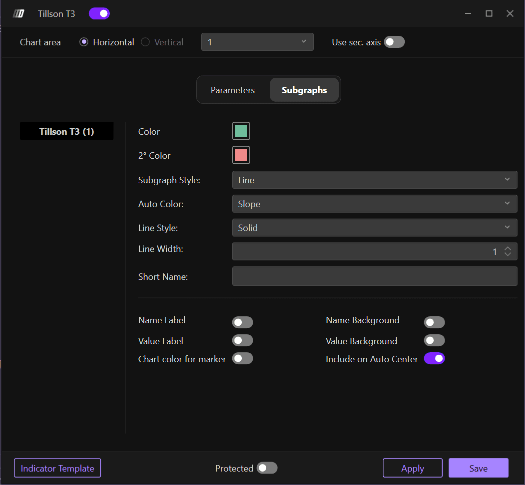 Sets the visual style of the T3 line. The default is "Solid" for a continuous, unbroken line that clearly shows the indicator's progression. Other option include dash which can be useful for distinguishing the T3 from other indicators when multiple tools are displayed on the same chart panel.